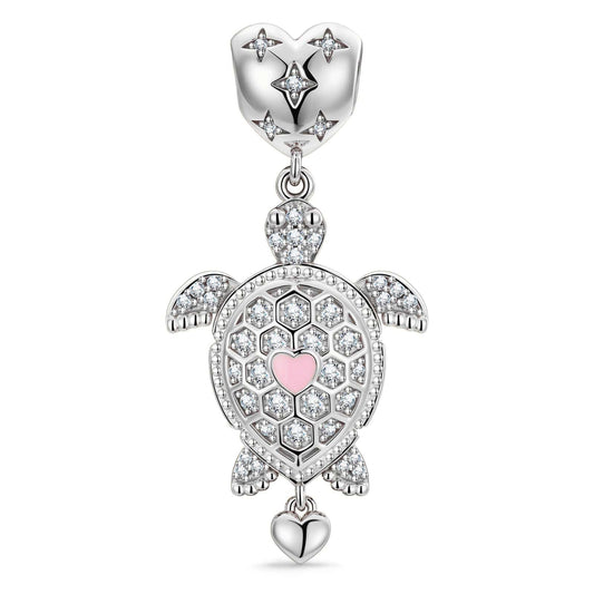 Heartfelt Turtle Tarnish-resistant Silver Dangle Charms With Enamel In White Gold Plated