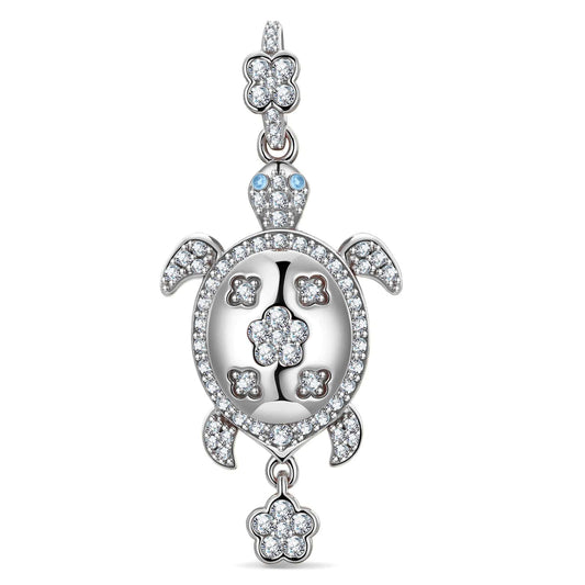 Serene Turtle Tarnish-resistant Silver Dangle Charms In White Gold Plated