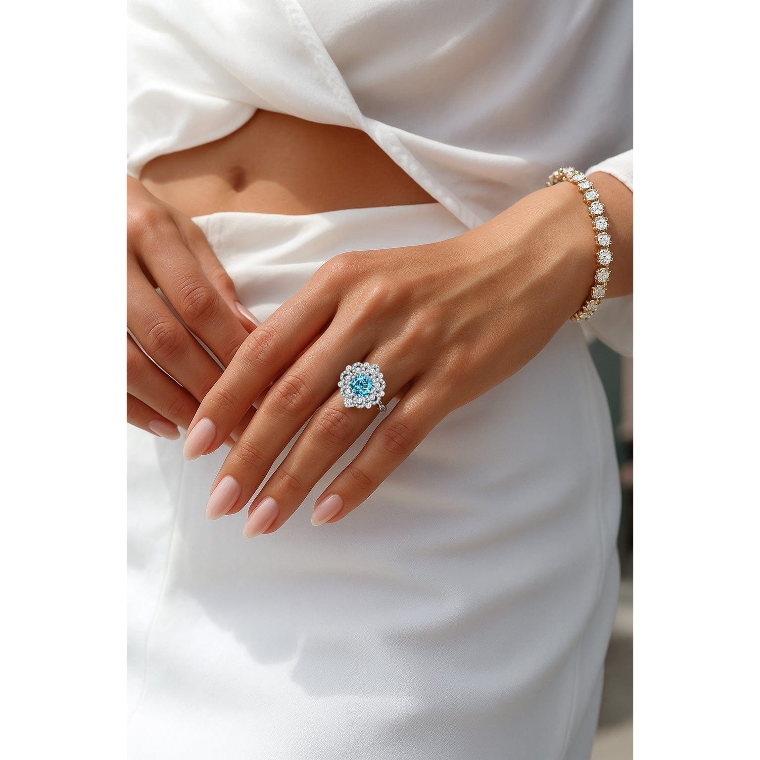 Main Stone:Fancy Vivid Blue Ice-Frosted Sparkle Lab Zircon