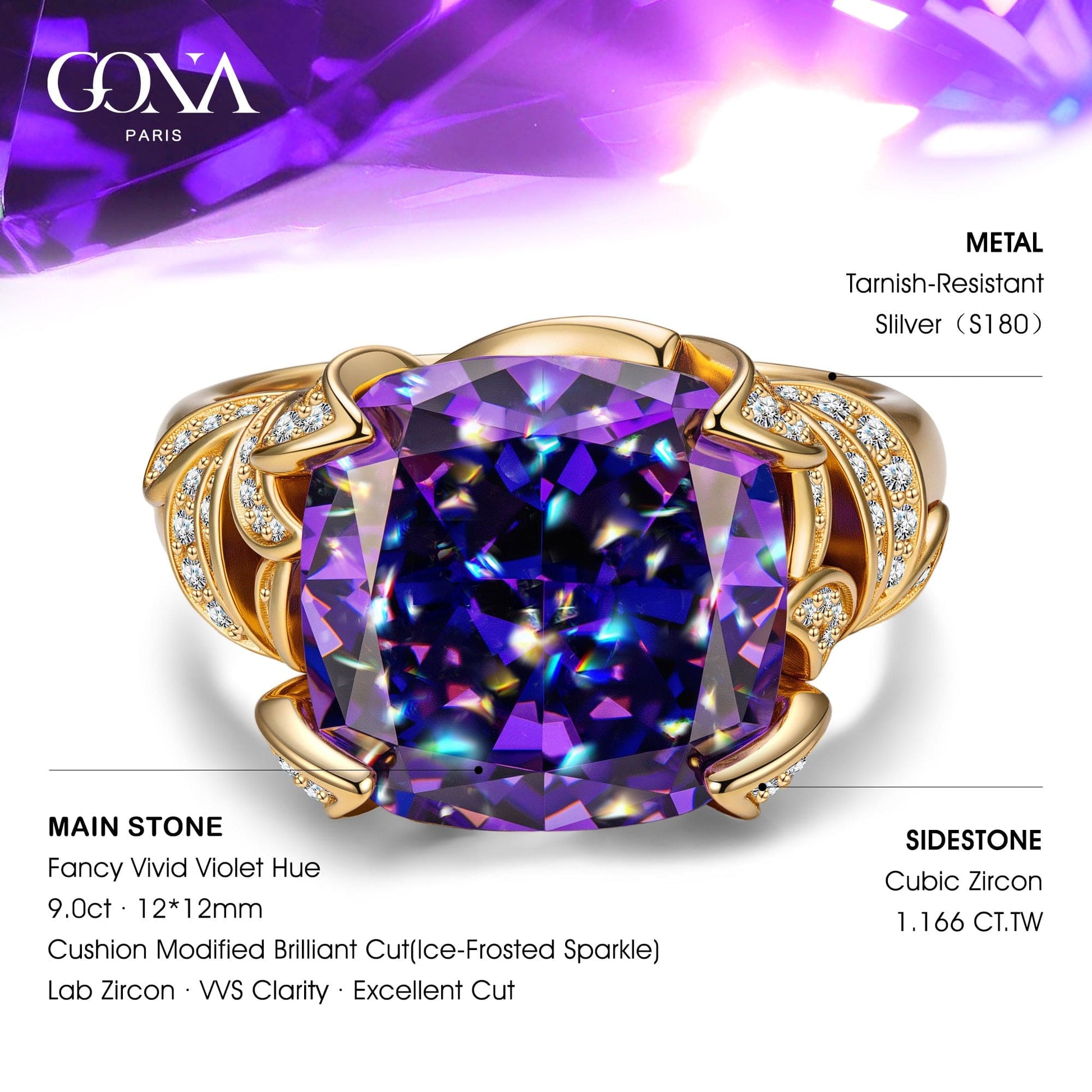 Main Stone:Fancy Vivid Violet Hue Ice-Frosted Sparkle Lab Zircon