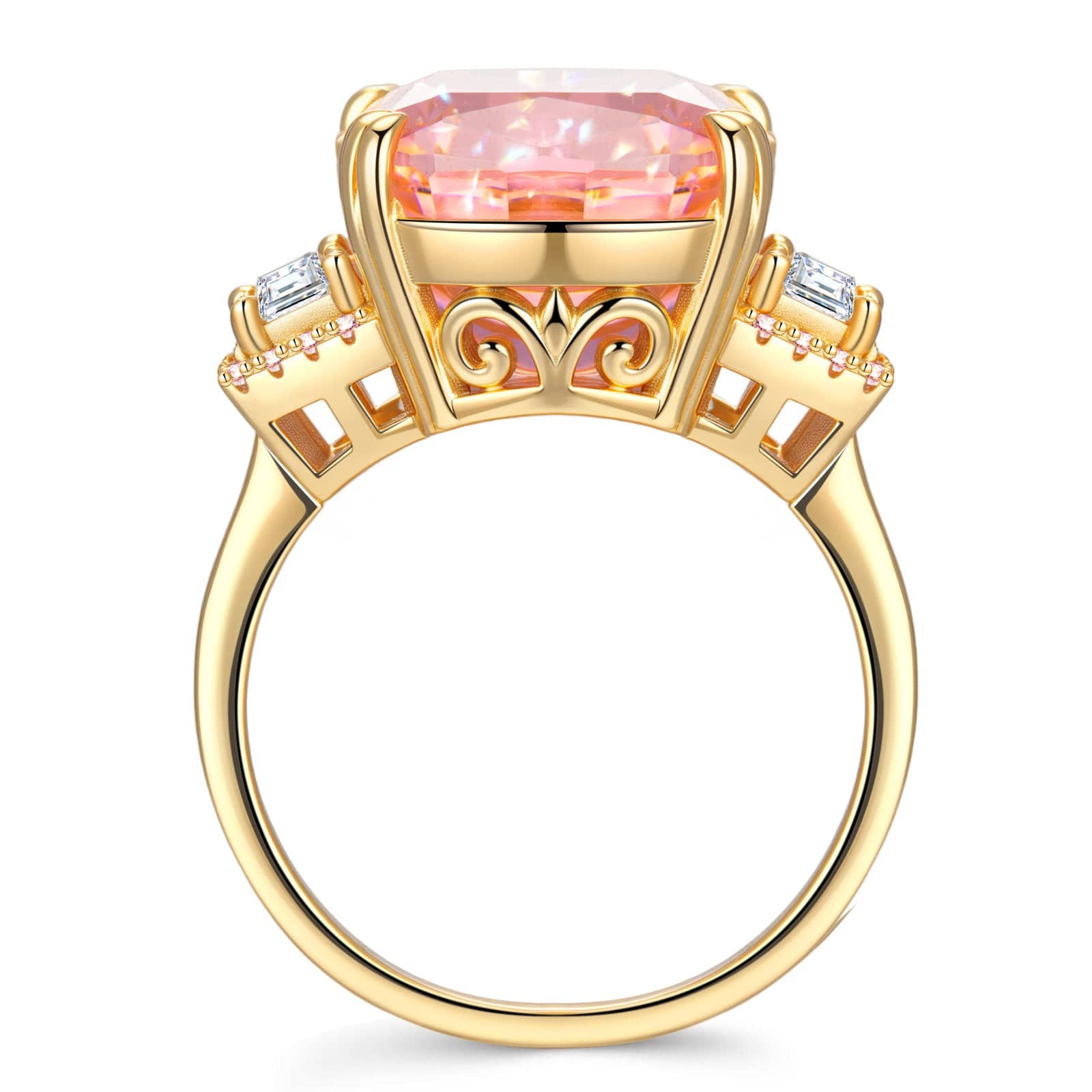 16*12mm Cushion Modified Brilliant Cut Padparadscha Sunset Glow Ice-Frosted Sparkle Lab Zircon - Three Stone Classic Engagement Ring 14K Yellow Gold Plated