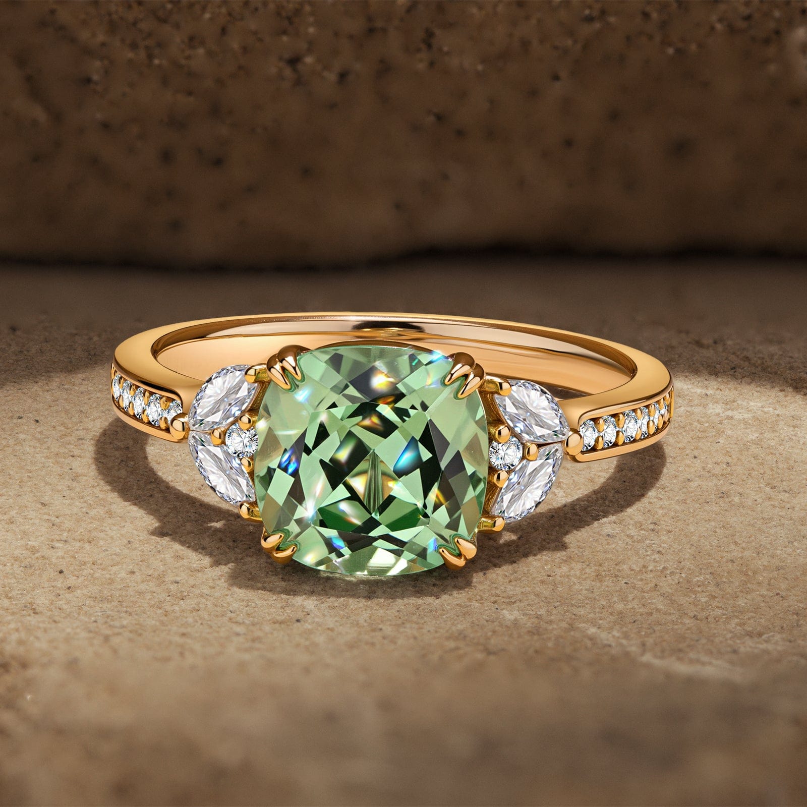 Cushion Cut Fancy Vivid Lagoon Mint Hue Lab-Certified Teal & Green Sapphire  - Pave Classic Engagement Ring 14K Yellow Gold Plated (Includes GRC Certification from Gemstone Research Center)