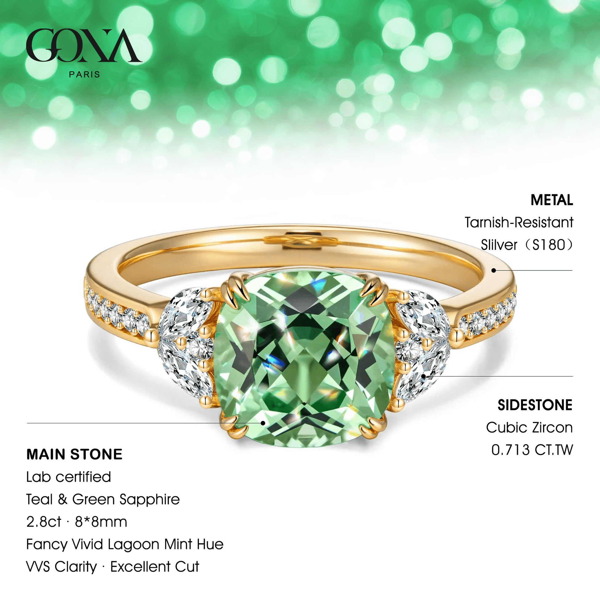 Main Stone:Lab-Certified Teal & Green Sapphire