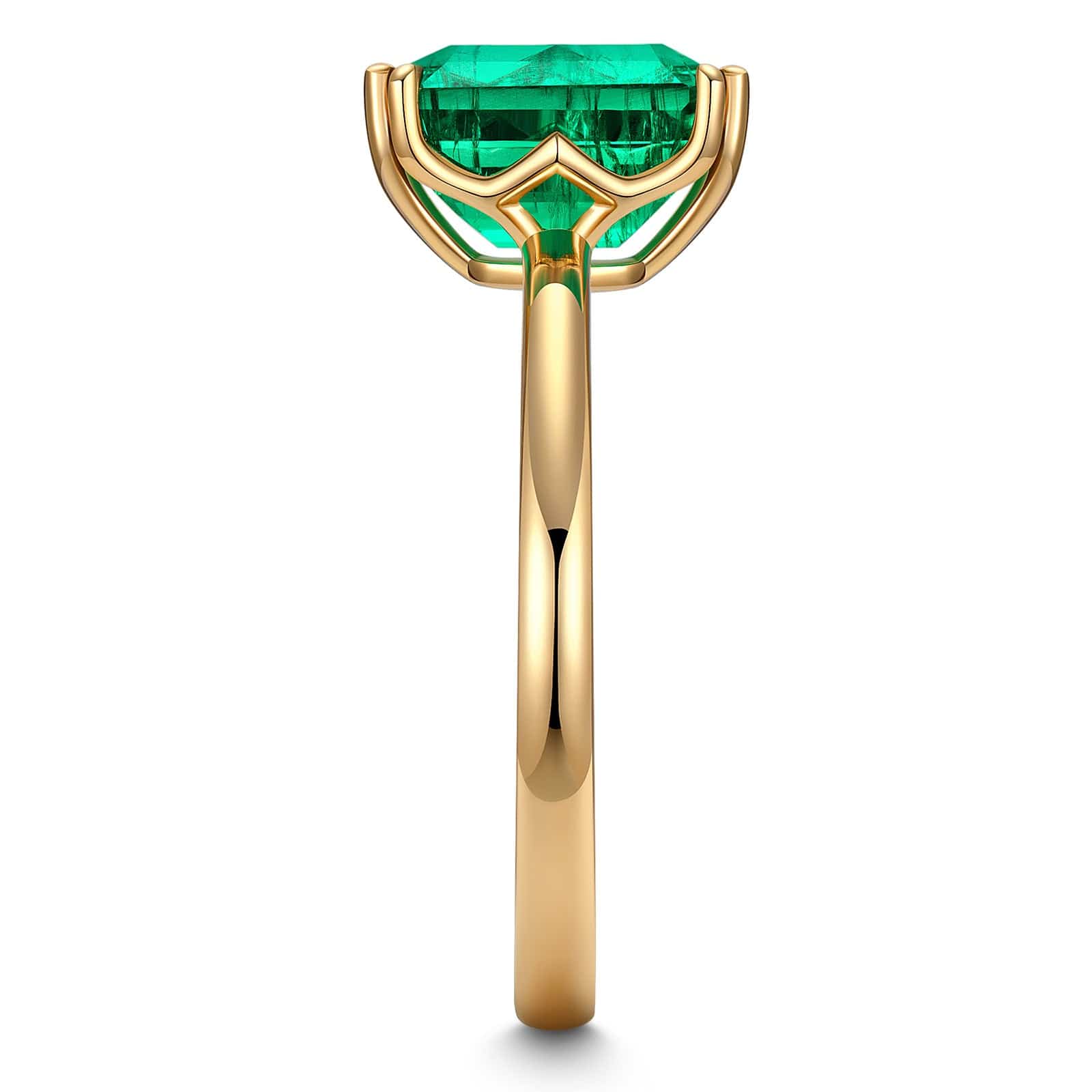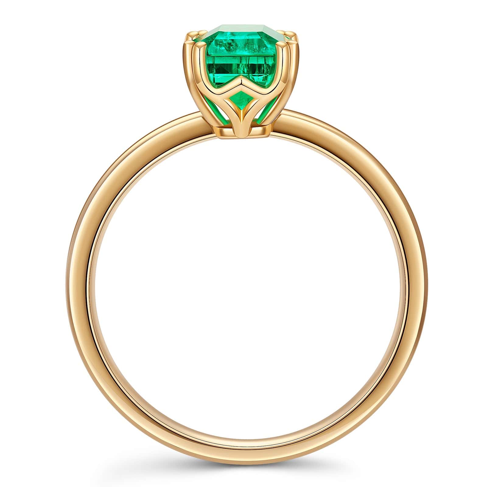 Emerald-Cut Vivid Colombian Green Lab-Certified Emerald - Solitaire Classic Engagement Ring 14K Yellow Gold Plated (Includes GRC Certification from Gemstone Research Center)