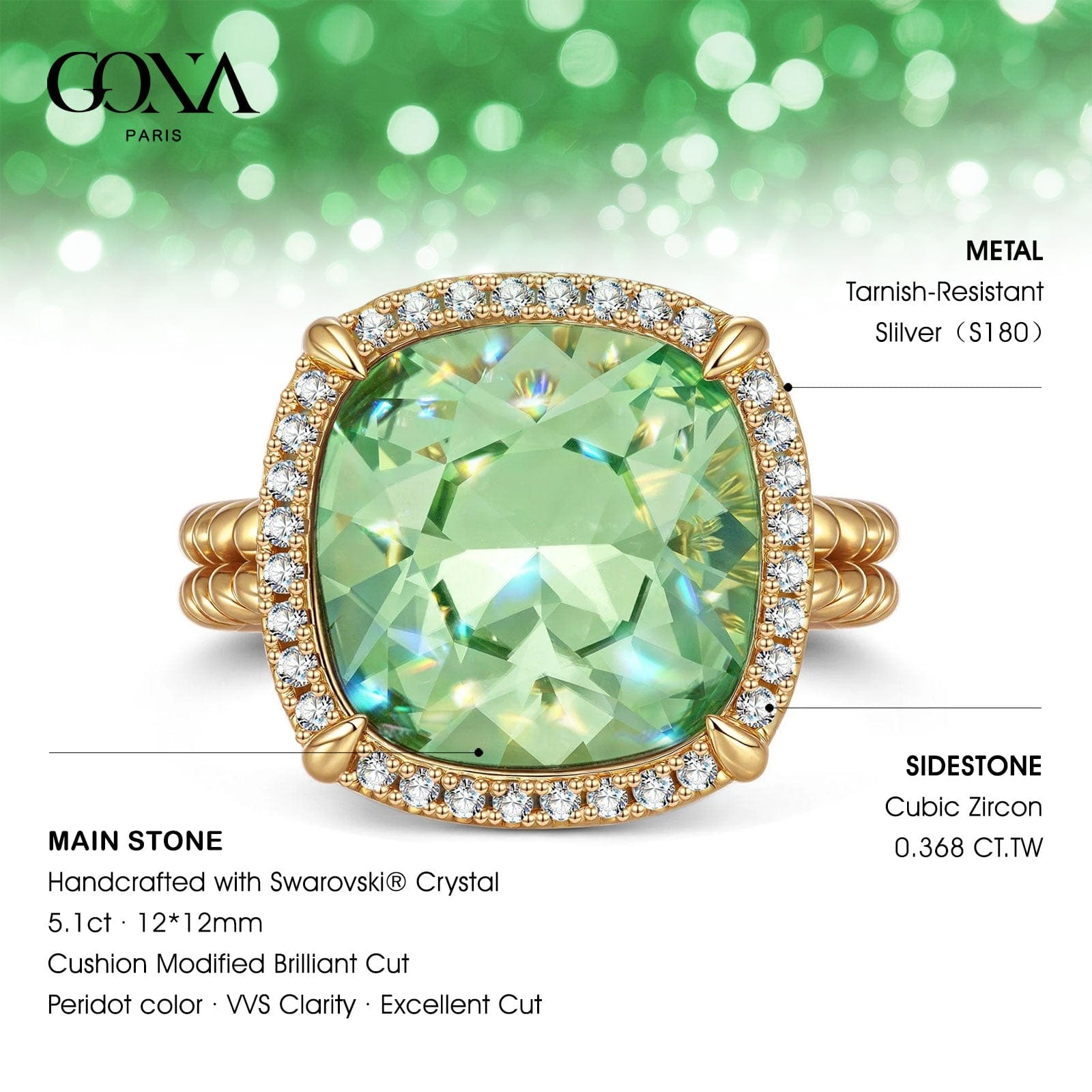 Main Stone:Peridot Color Created With Swarovski® Crystals