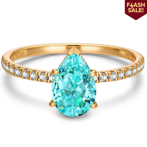 Pear Brilliant Cut Electric Lagoon Hue Lab-Certified Paraiba Tourmaline - Pave Classic Engagement Ring 14K Yellow Gold Plated (Includes GRC Certification from Gemstone Research Center)