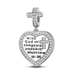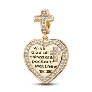 Design: The inscription reads: with God all things are possible matthew; combined with the heart shape and the cross element; God's welfare, we will always be engraved in our hearts; expressing the belief in God, we can facilitate God's presence and the light of God will become our own amulet.