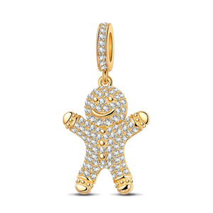 Embrace The Gingerbread Man Tarnish-resistant Silver Dangle Charms With Enamel In 14K Gold Plated