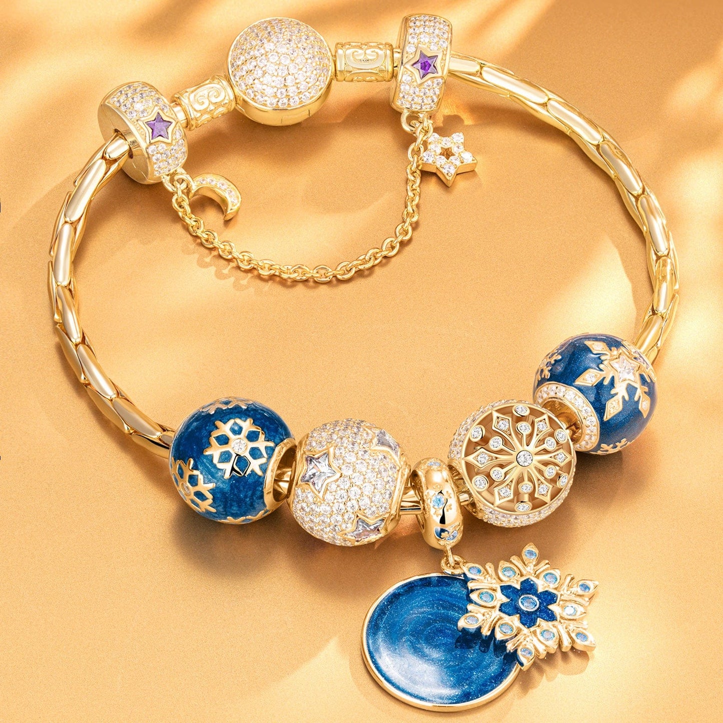 Design: The centerpiece of the collection is a beautiful blue snowflake charm, delicately crafted with intricate details that reflect the unique and mesmerizing patterns of real snowflakes. Other charms in the collection include a shimmering icicle charm, a playful penguin charm, and a serene winter scene charm featuring a snow-covered cabin.