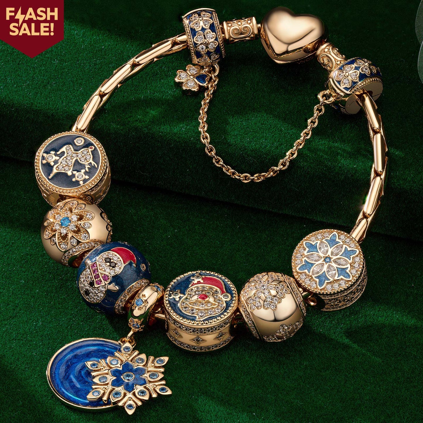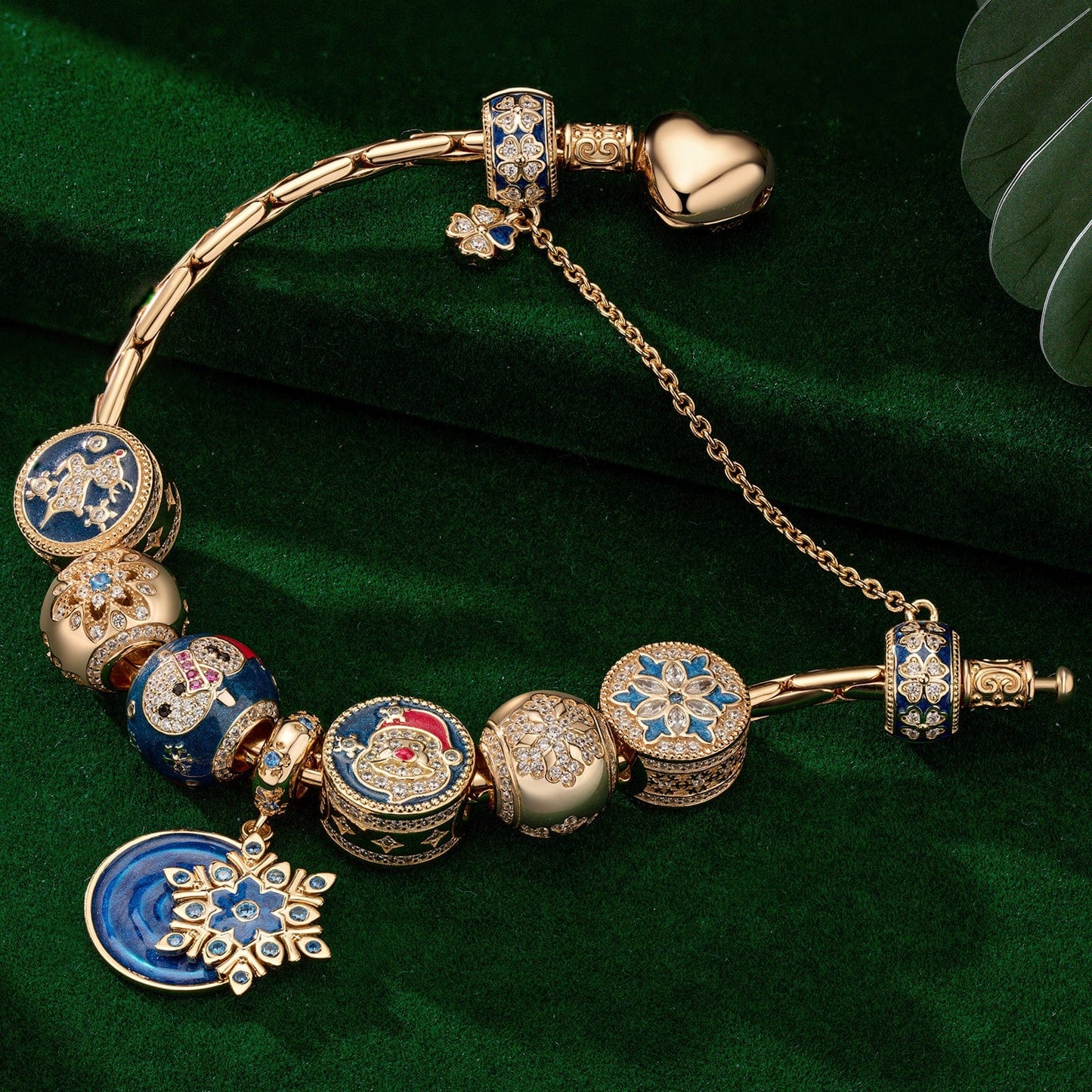 Design: The centerpiece of the collection is a beautiful blue snowflake charm, delicately crafted with intricate details that reflect the unique and mesmerizing patterns of real snowflakes. Other charms in the collection include a shimmering icicle charm, a playful penguin charm, and a serene winter scene charm featuring a snow-covered cabin.