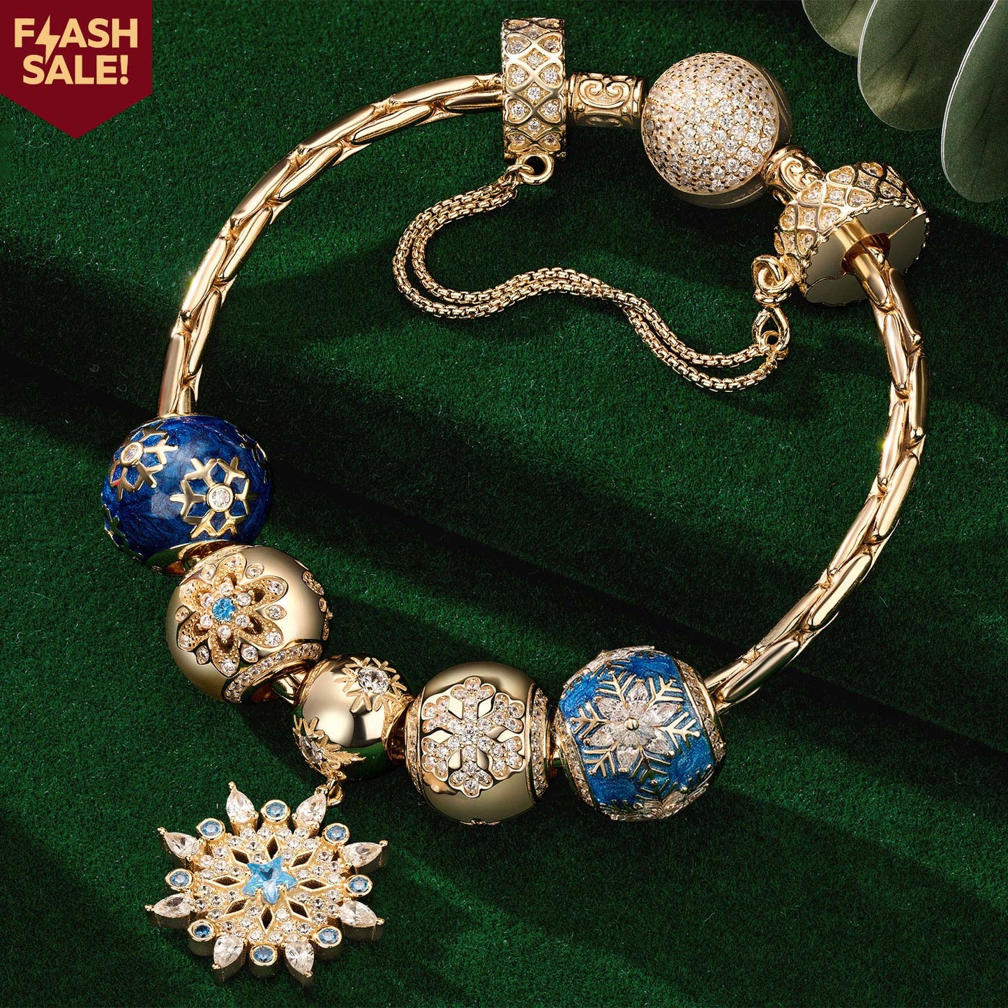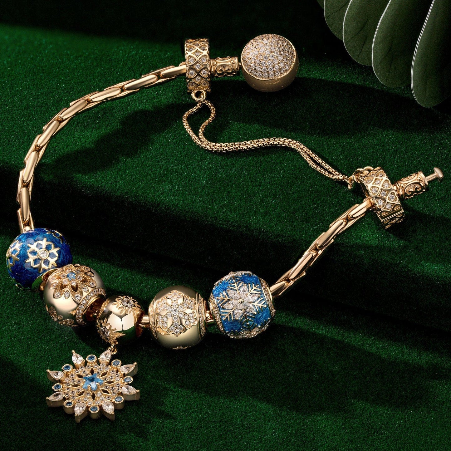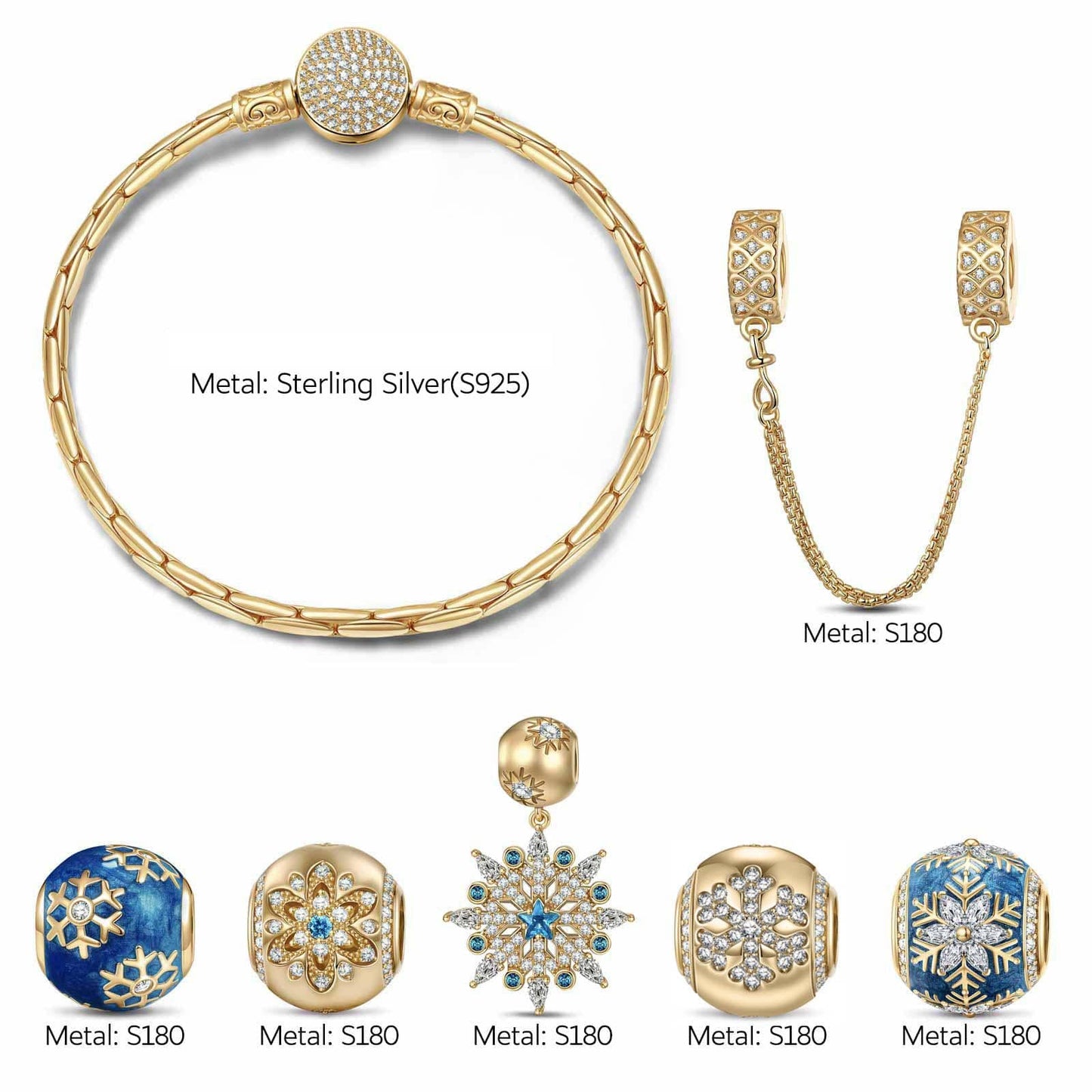 Design: The centerpiece of the collection is a beautiful blue snowflake charm, delicately crafted with intricate details that reflect the unique and mesmerizing patterns of real snowflakes. Other charms in the collection include a shimmering icicle charm, a playful penguin charm, and a serene winter scene charm featuring a snow-covered cabin.