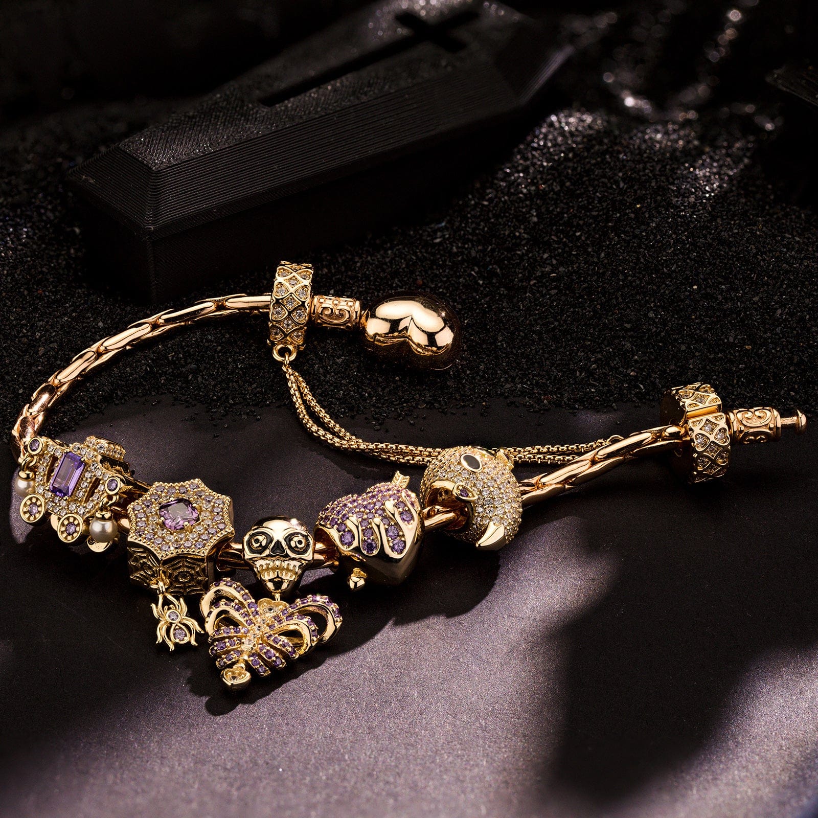 Sterling Silver Playful Phantoms Charms Bracelet Set With Enamel In 14K Gold Plated (Includes bracelet and all charms shown)