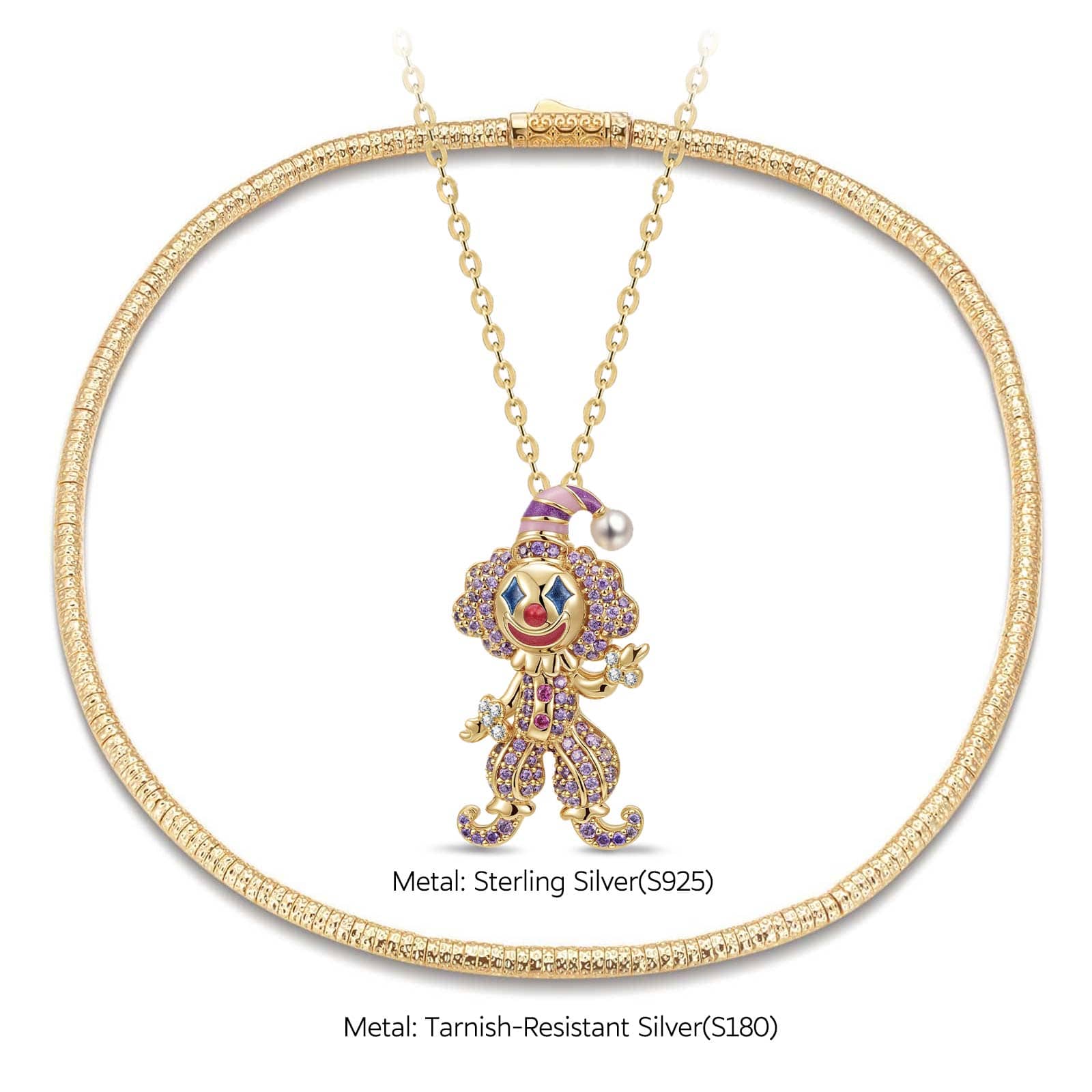 Sterling Silver Trickster's Masquerade Charms Necklace Set With Enamel In 14K Gold Plated