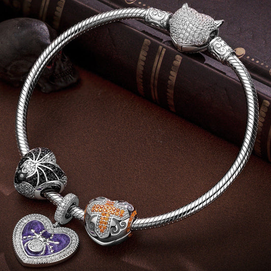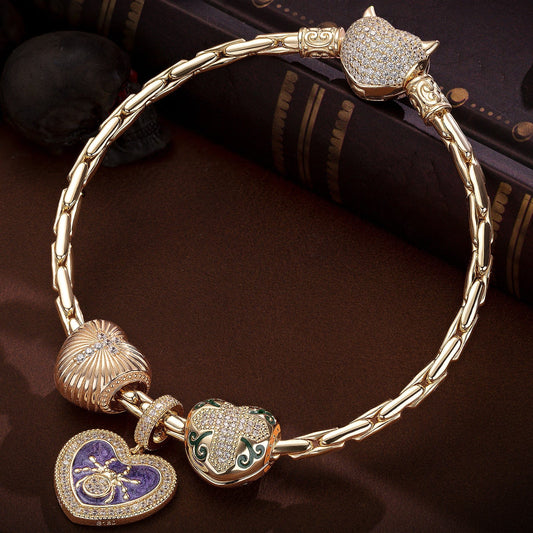 Sterling Silver Miss Spider and the Cross Charms Bracelet Set With Enamel In 14K Gold Plated (Includes bracelet and all charms shown)
