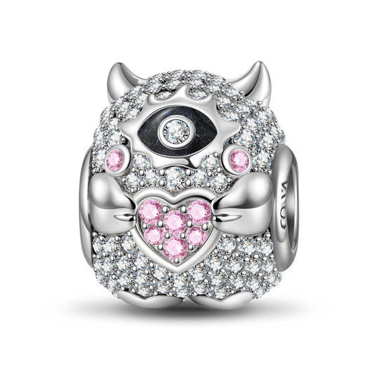 Sterling Silver Cute Cyclops Charms With Enamel In White Gold Plated