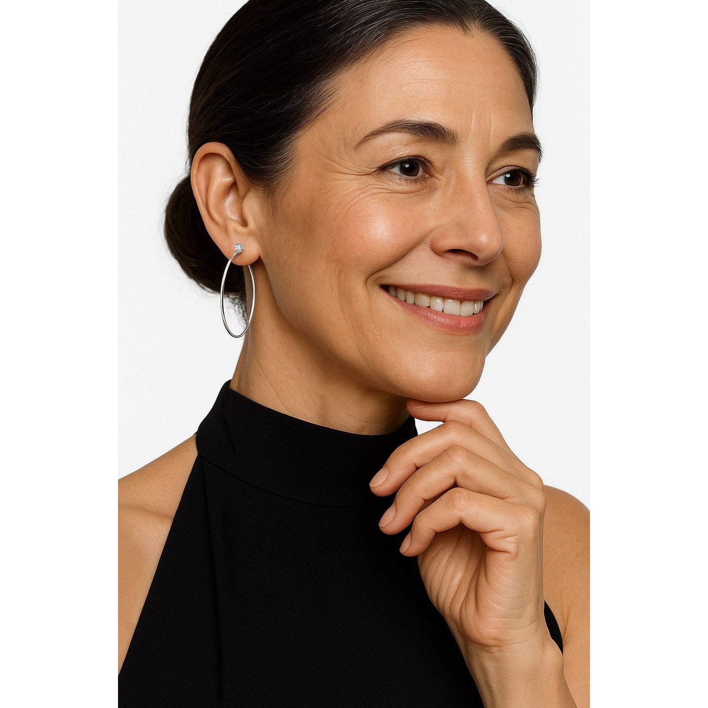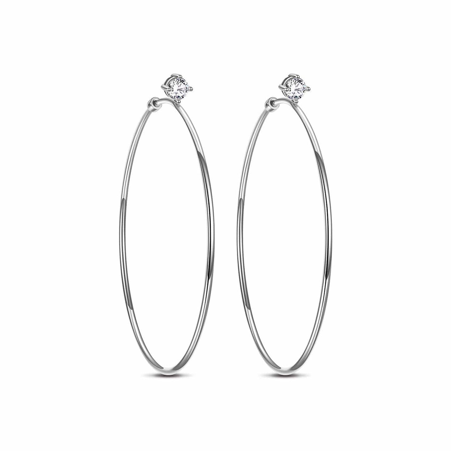 Sterling Silver Classic Large Hoop Earrings In White Gold Plated