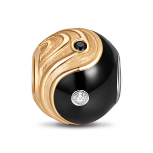 Sterling Silver Tai Chi Charms With Enamel In Two-Tone Plating