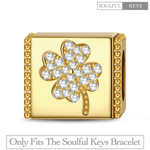 A Four-Leaf Clover Tarnish-resistant Silver Rectangular Charms In 14K Gold Plated
