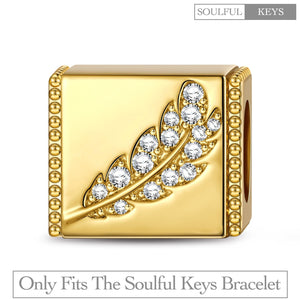 Feather Tarnish-resistant Silver Rectangular Charms In 14K Gold Plated