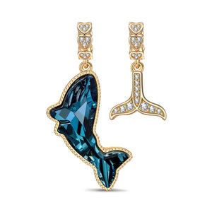 Sapphire Whale Tarnish-resistant Silver Dangle Charms with Crystal from Swarovski In 14K Gold Plated