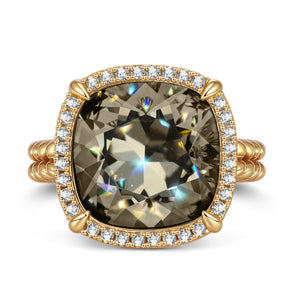 Created With Swarovski® Crystals - Cushion Modified Brilliant Cut Golden Shadow Color Halo Classic Engagement Ring 14K Yellow Gold Plated