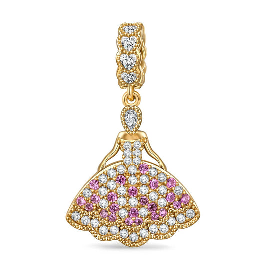 Pink Petal Princess Tarnish-resistant Silver Dangle Charms In 14K Gold Plated