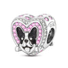 Sterling Silver Pink Puppy Love Charms With Enamel In White Gold Plated
