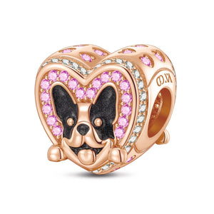 Pink Puppy Love Tarnish-resistant Silver Charms With Enamel In Rose Gold Plated