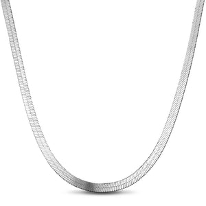 Sterling Silver 4.0mm Flat Snake Chain Necklace In White Gold Plated