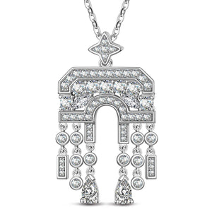 Sterling Silver Necklace Chain Arch of Triumph Tarnish-resistant Silver Tassels Pendant Necklace In White Gold Plated