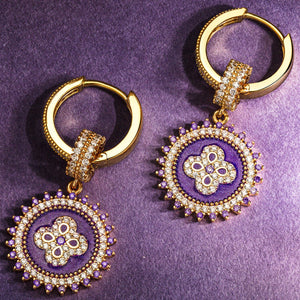 Sterling Silver Violet Whispers Charms Earrings Set With Enamel In 14K Gold Plated