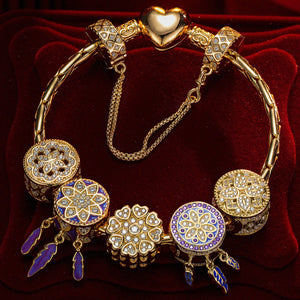 Sterling Silver Lavender Love Charms Bracelet Set With Enamel In 14K Gold Plated (Includes bracelet and all charms shown)