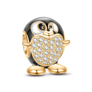 Cute PenguIn Tarnish-resistant Silver Charms With Enamel In 14K Gold Plated