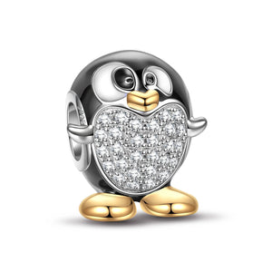 Sterling Silver Cute PenguIn Charms With Enamel In Two-Tone Plating