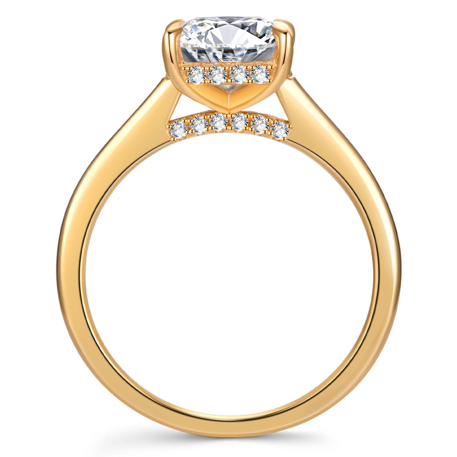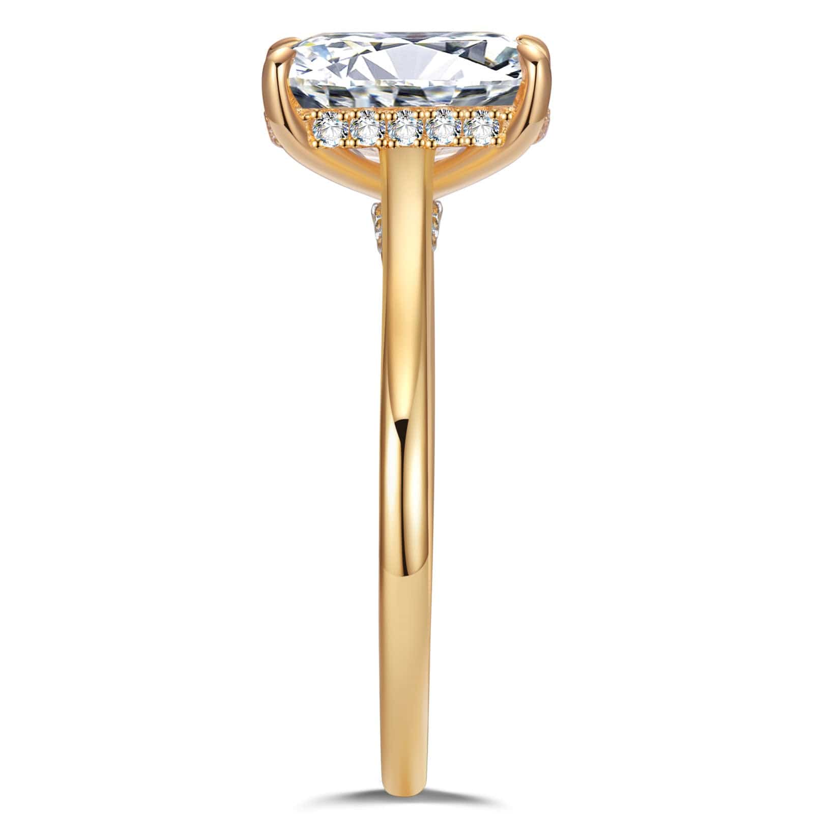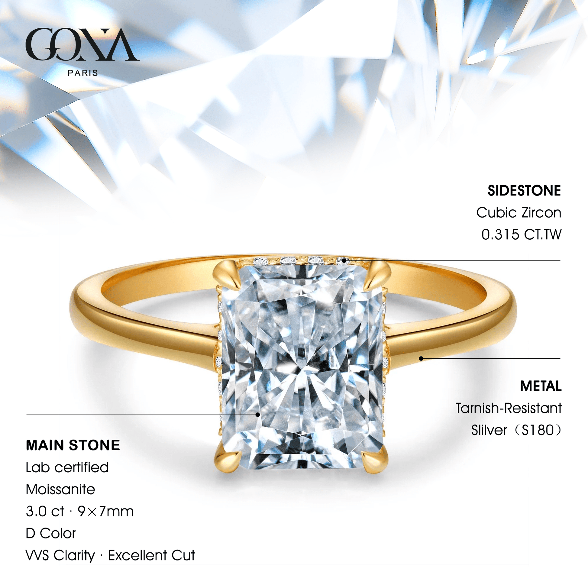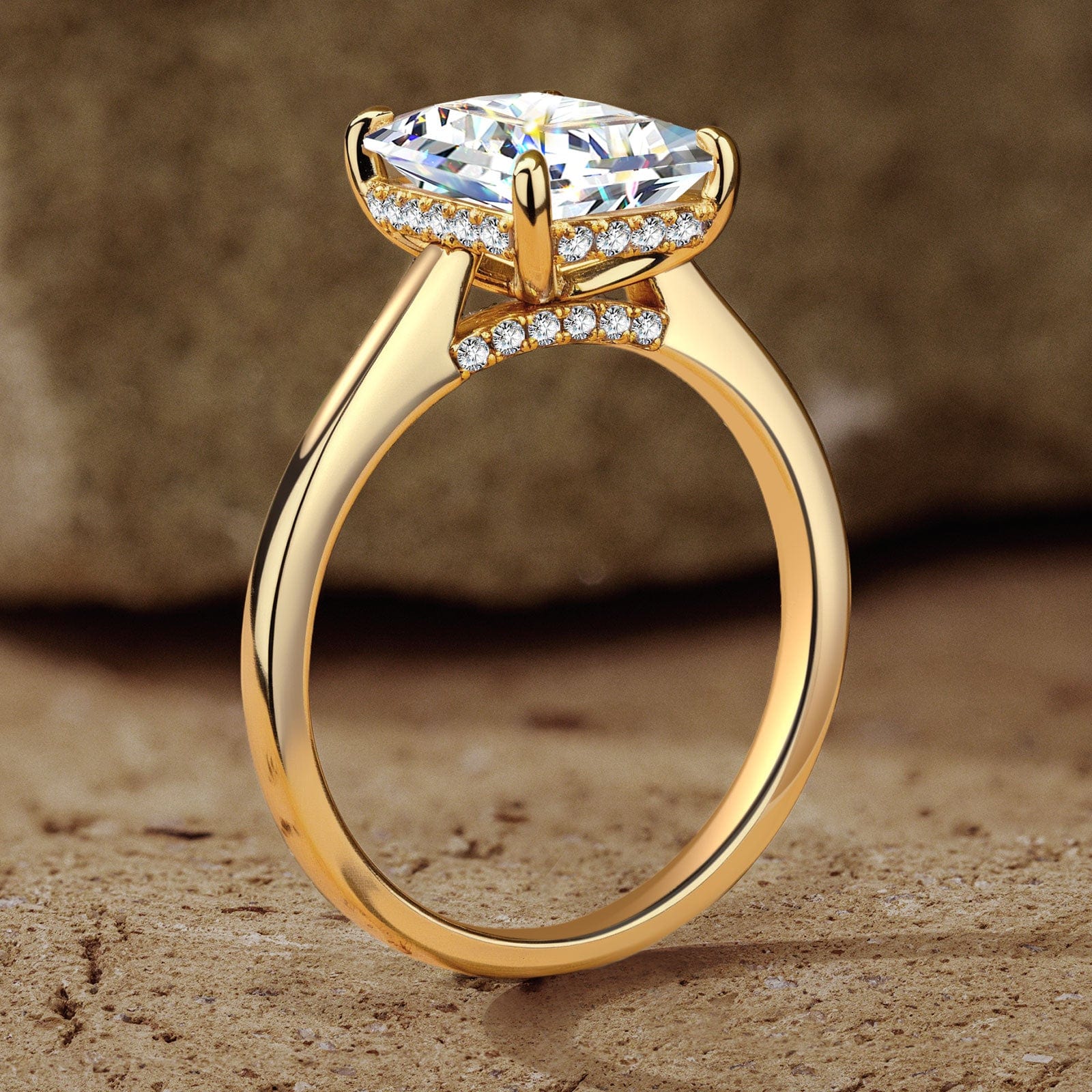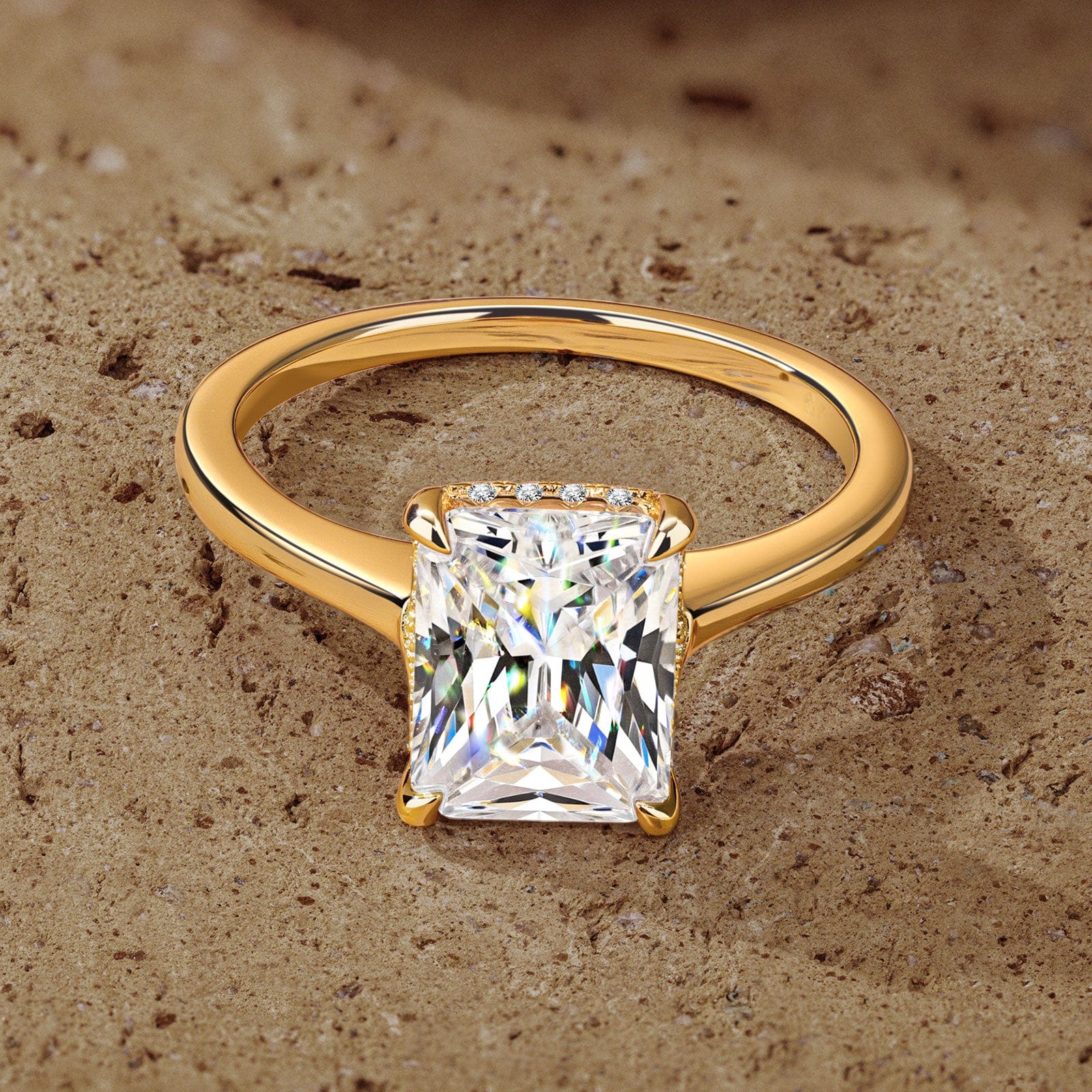 Lab-Certified Radiant Cut Moissanite - Hidden Halo Classic Engagement Ring 14K Yellow Gold Plated (Includes GRA Certification from Gemological Research Association)