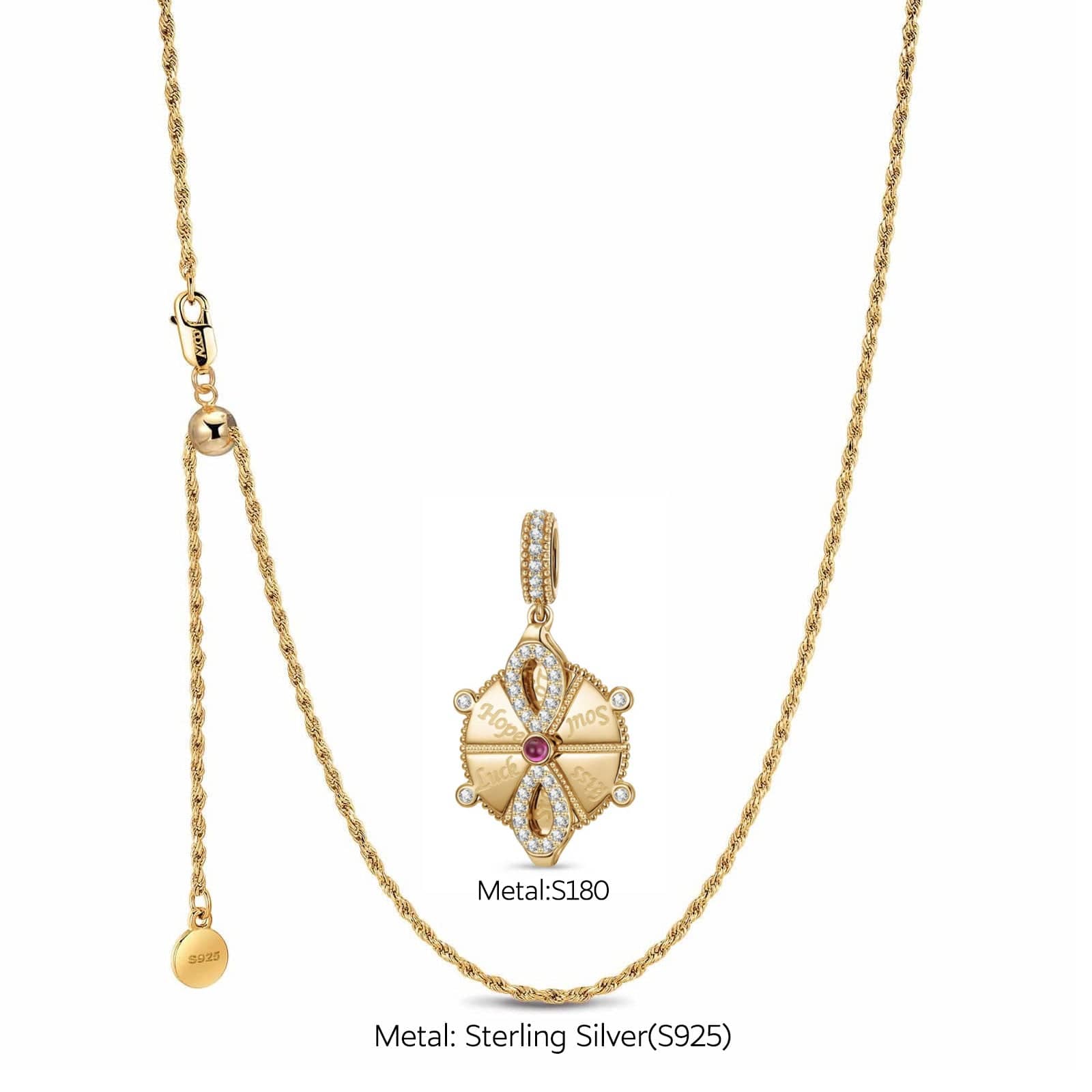 Sterling Silver Fortune Circle Necklace Set In 14K Gold Plated