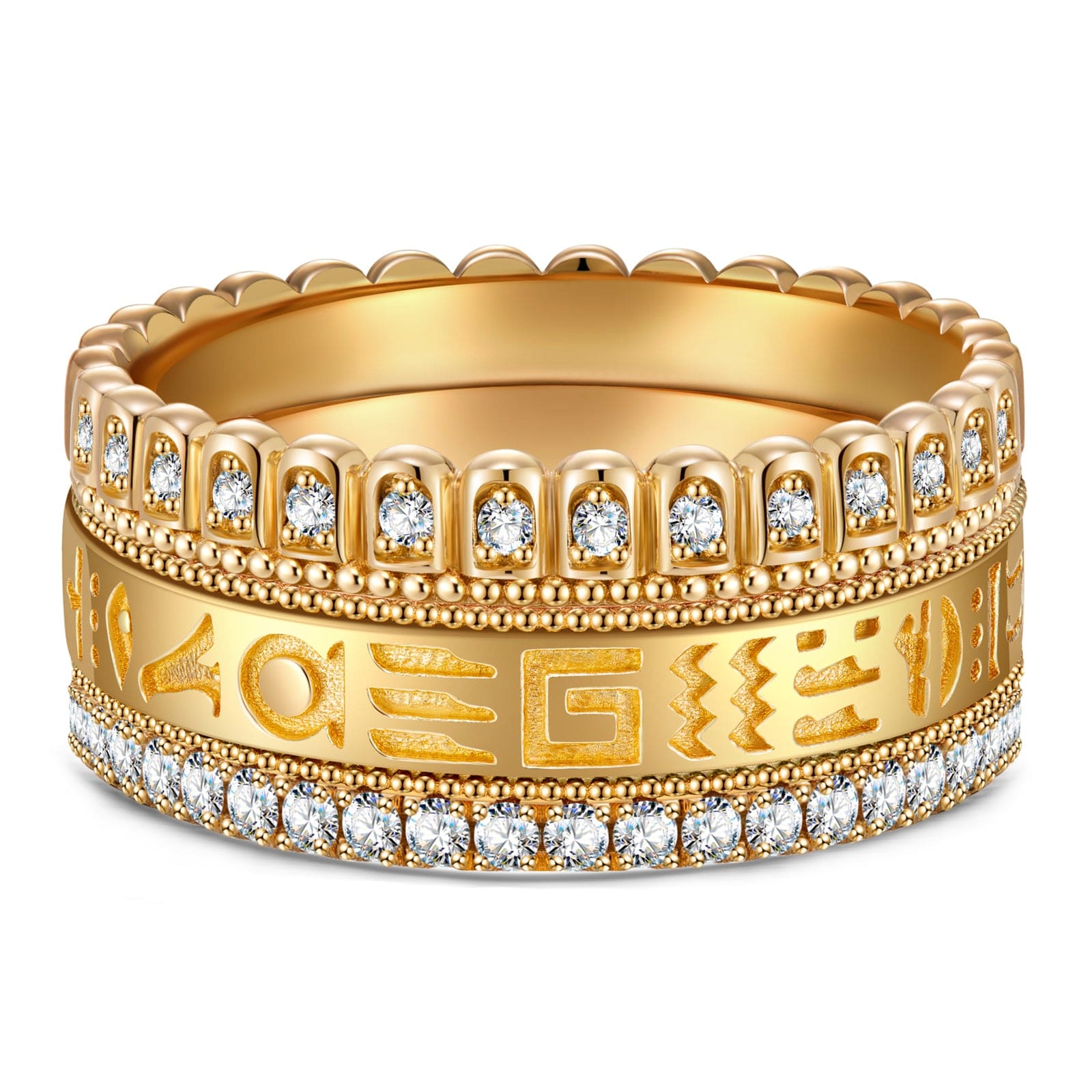 The Destiny Band Ring Round Brilliant Cut Diamond White Lab Zircon Stackable Rings Set Wedding Rings - Forever Wedding Bands 14K Yellow Gold Plated