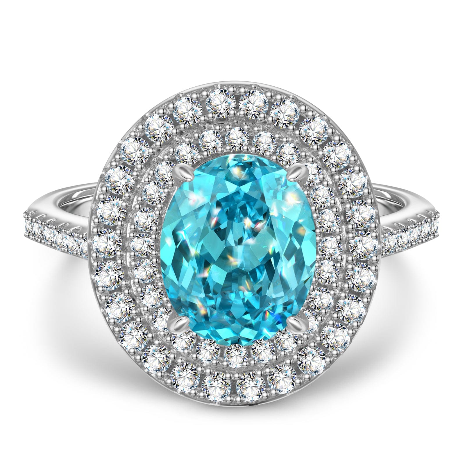 8*10mm Oval Modified Brilliant Cut Fancy Vivid Blue Ice-Frosted Sparkle Lab Zircon - Halo Classic Engagement Ring White Gold Plated