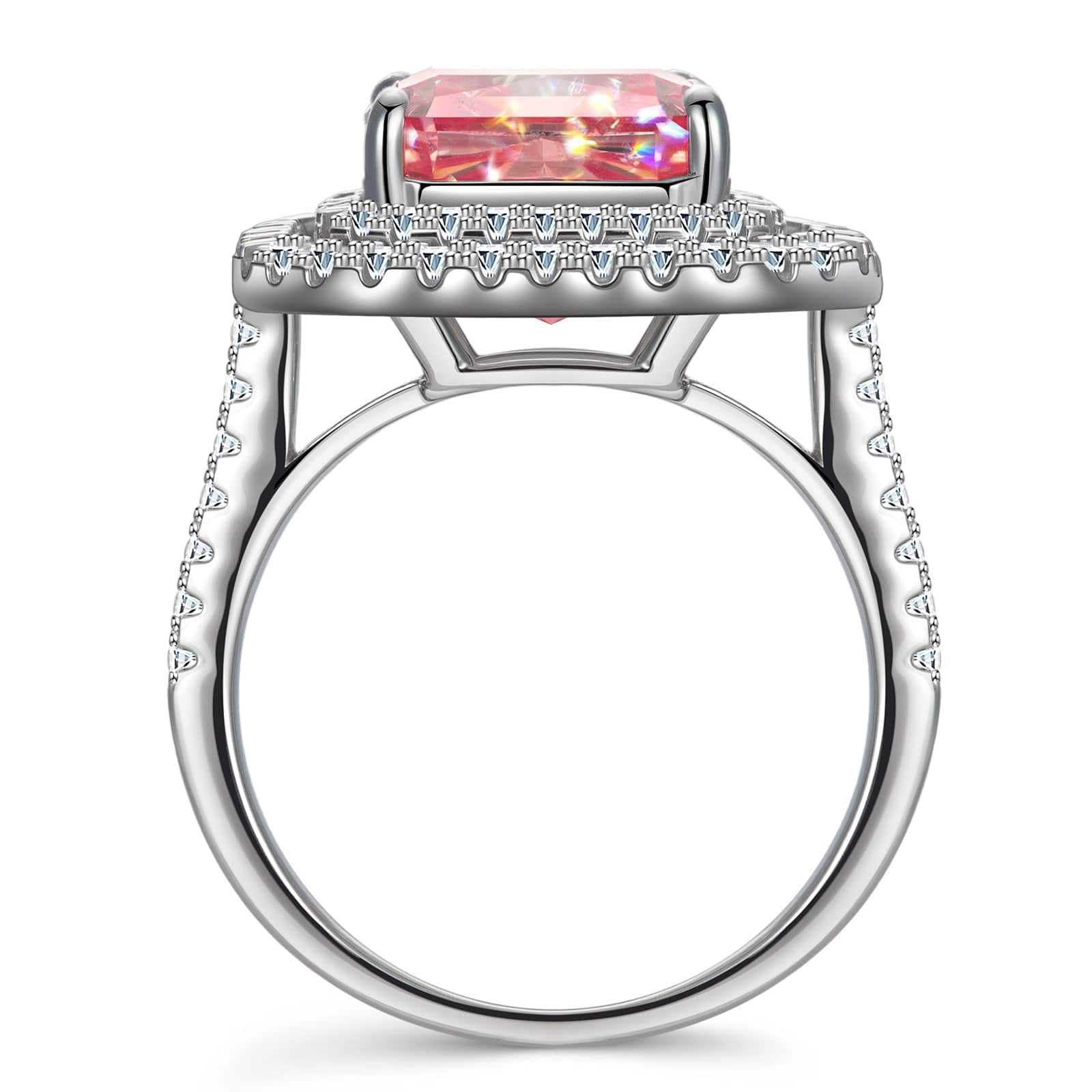 10*10mm Radiant Modified Brilliant Cut Fancy Vivid Pink Ice-Frosted Sparkle Lab Zircon - Halo Classic Engagement Ring White Gold Plated