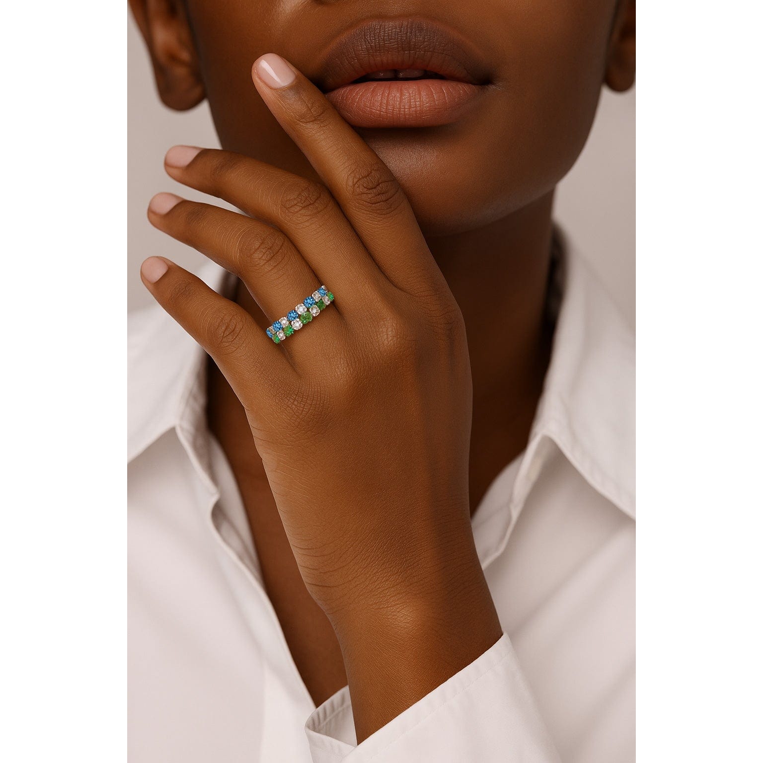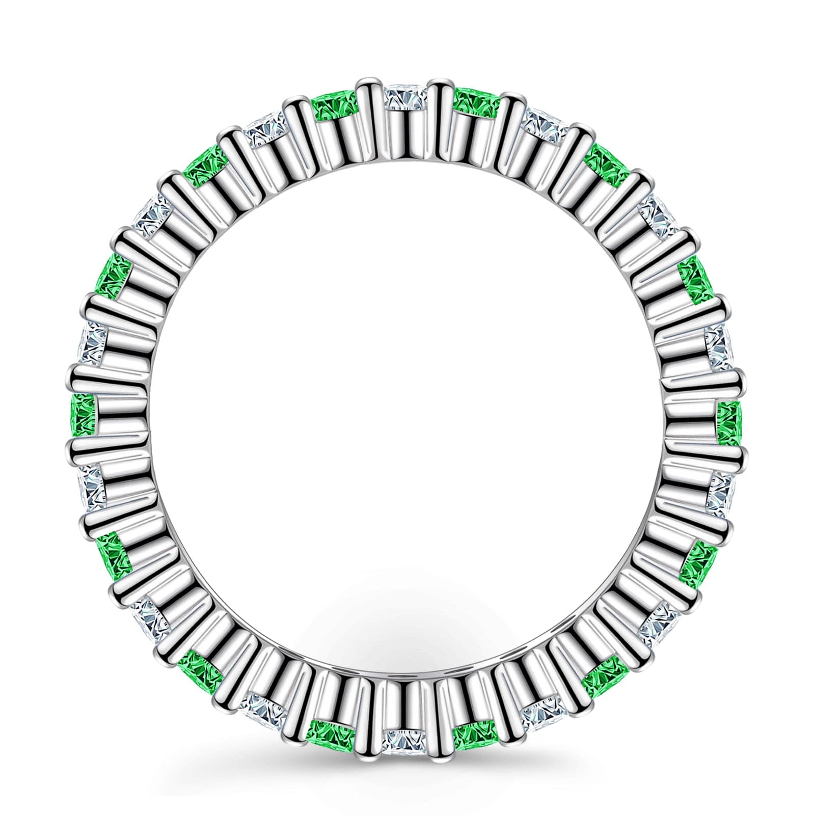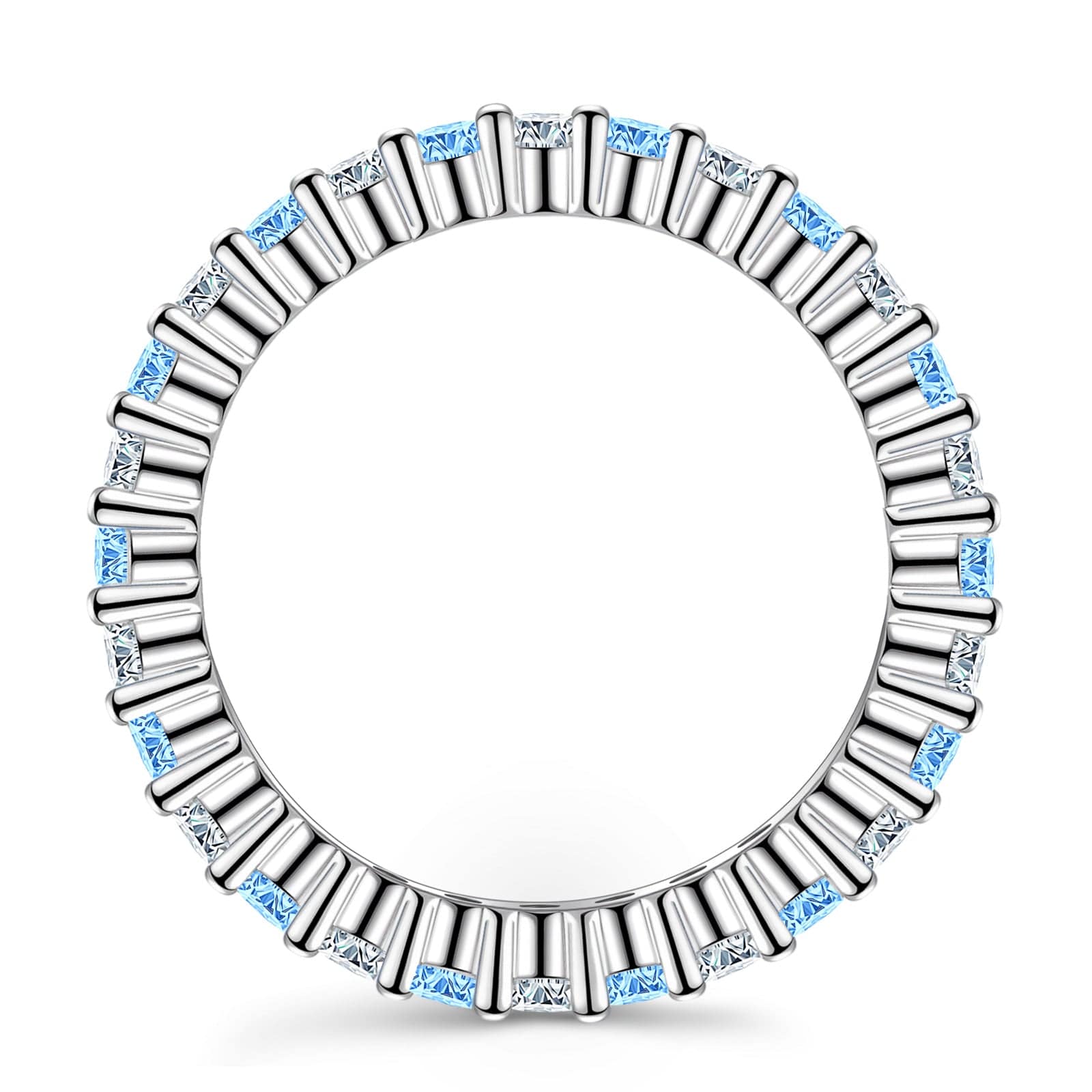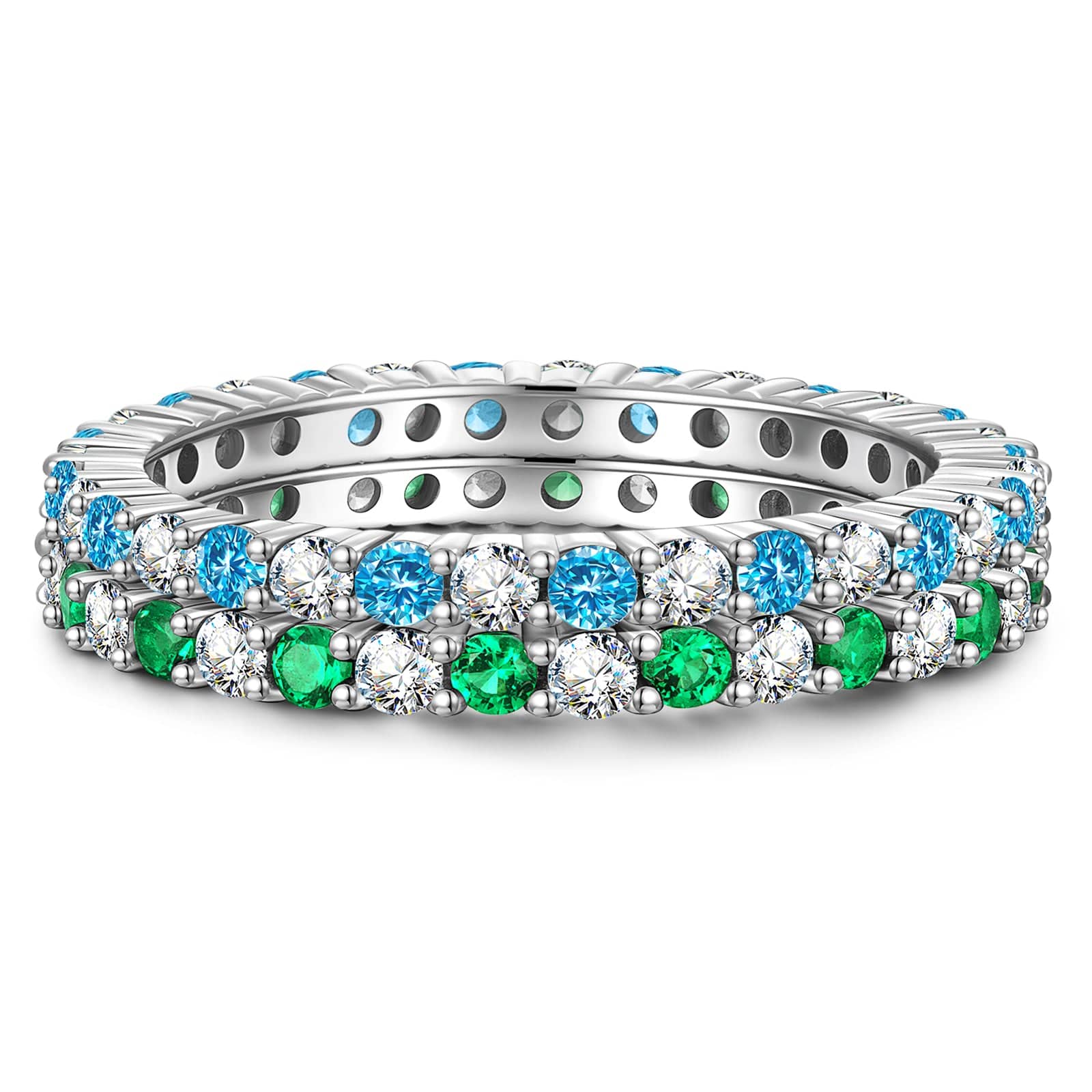 2*2mm Round Brilliant Cut Fancy Vivid Blue Lab Zircon and Mint Green Lab Zircon Stackable Rings Set - Eternity Rings Classic Wedding Bands White Gold Plated