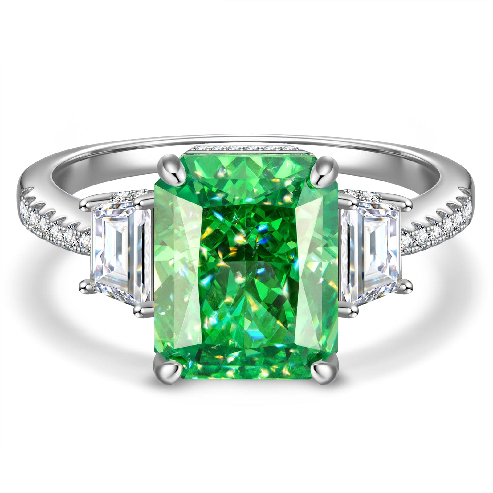 8*10mm Radiant Modified Brilliant Cut Vivid Colombian Green Ice-Frosted Sparkle Lab Zircon - Three Stone Classic Engagement Ring White Gold Plated