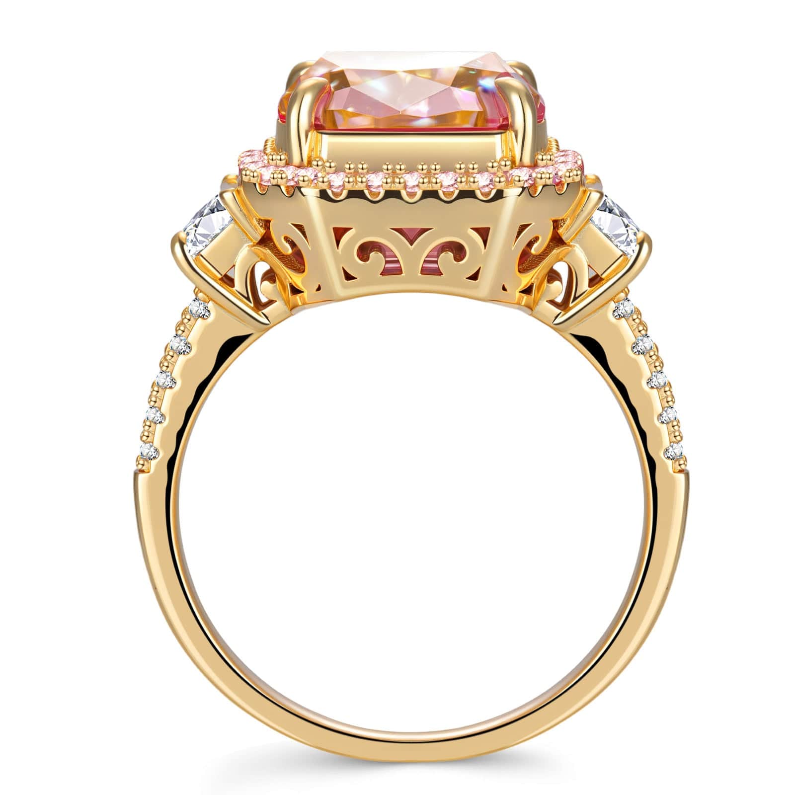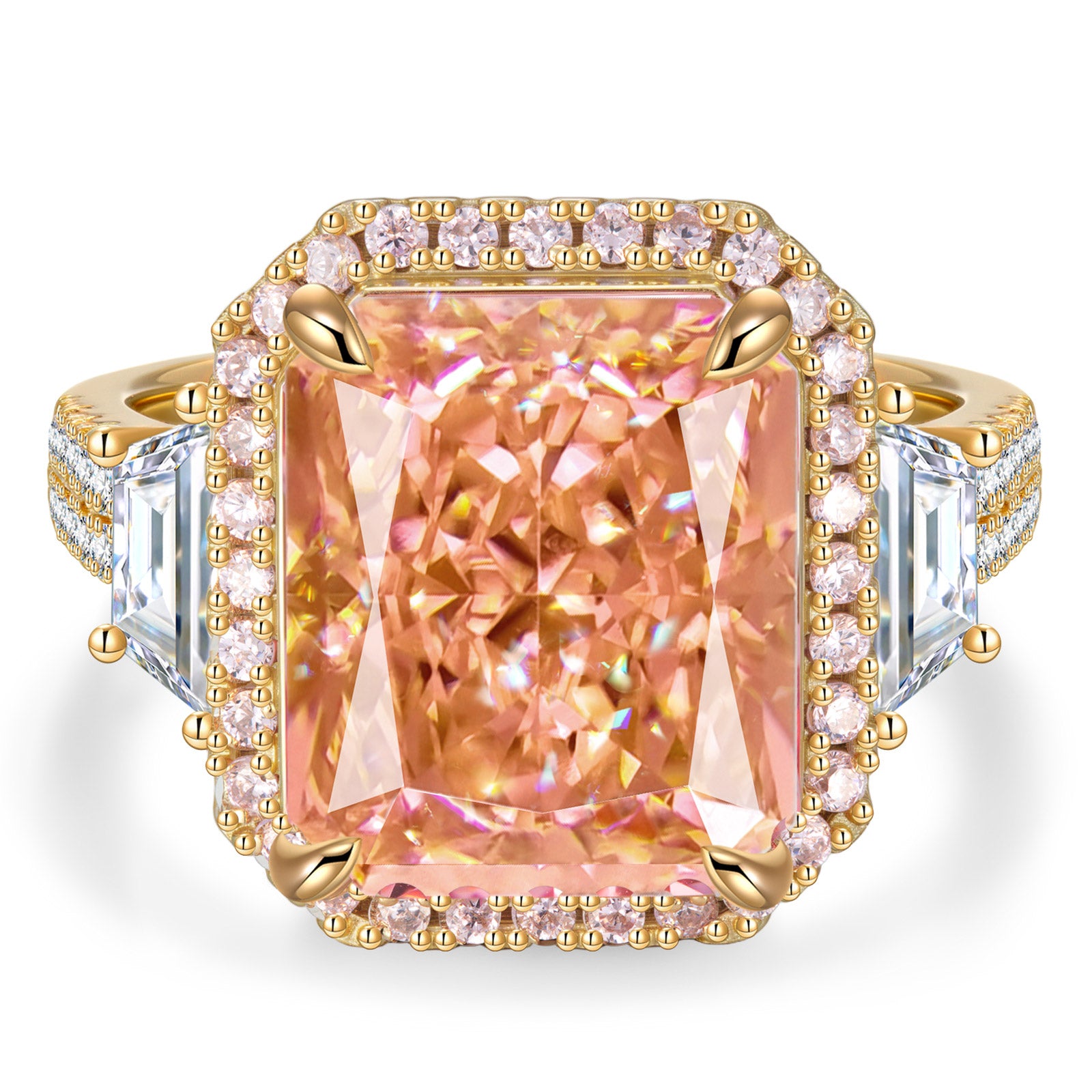 12*10mm Radiant Modified Brilliant Cut Padparadscha Sunset Glow Ice-Frosted Sparkle Lab Zircon - Pave Classic Engagement Ring 14K Yellow Gold Plated