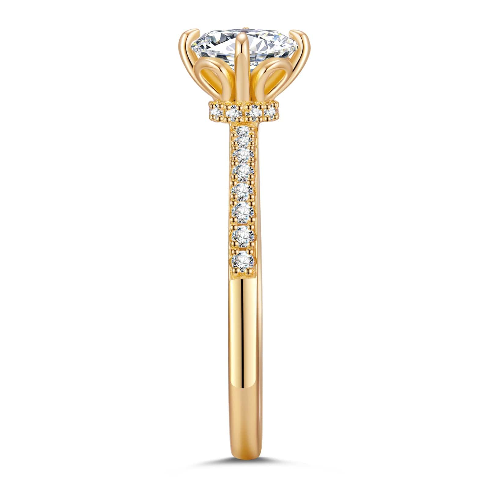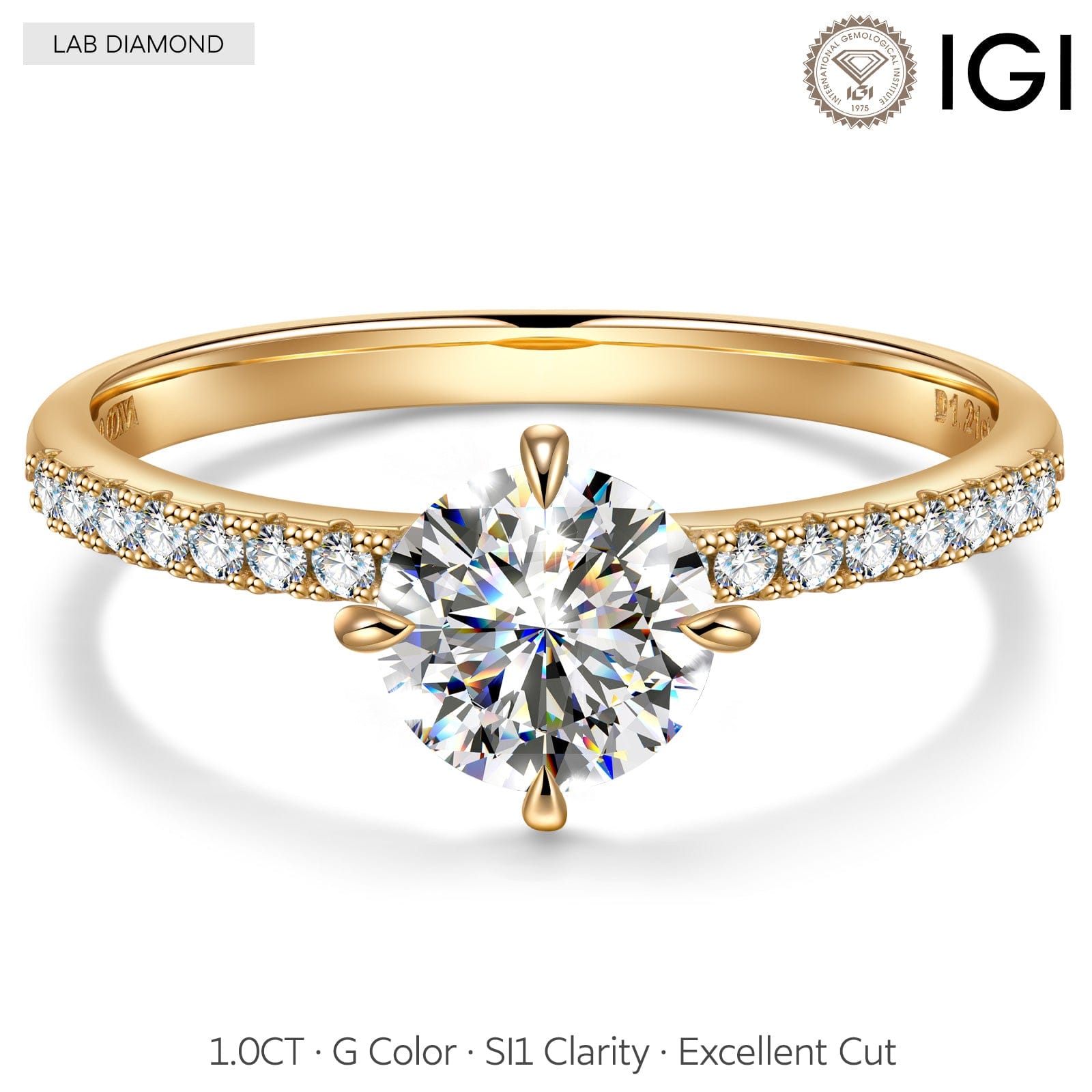 IGI Certified Lab-Grown Round Brilliant Cut Diamond - Hidden Halo Classic Engagement Ring 14K Yellow Gold Plated (Includes IGI Certification from International Gemological Institute)