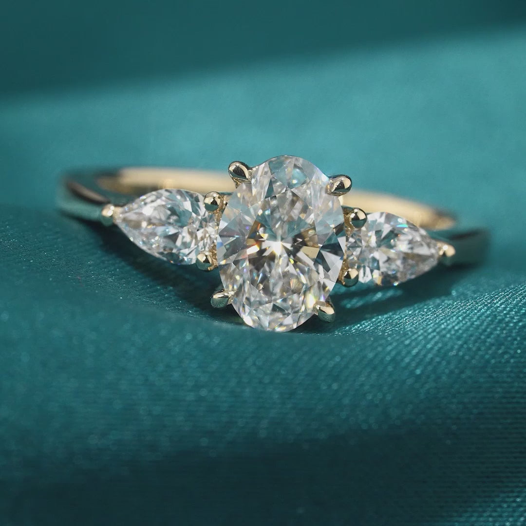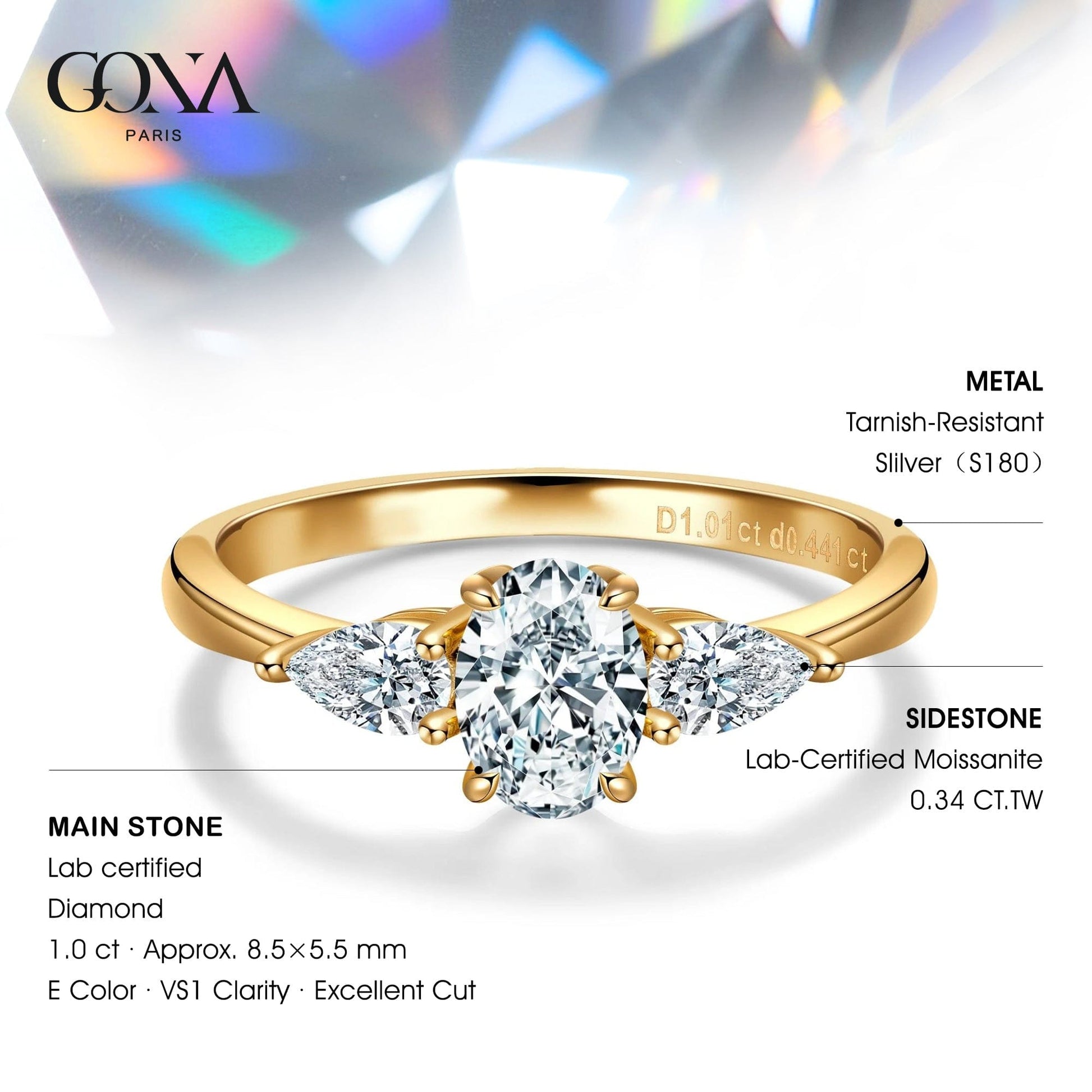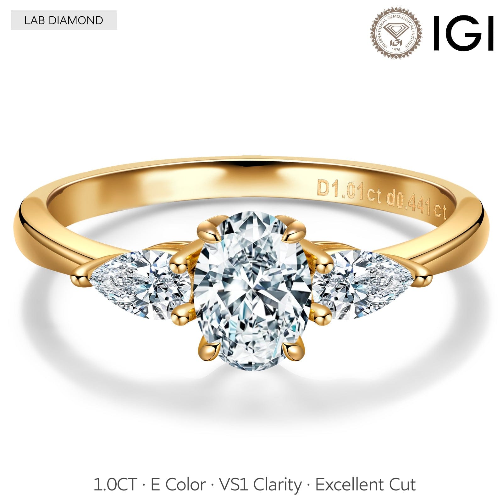 IGI Certified Lab-Grown Oval Brilliant Cut Diamond - Three Stone Classic Engagement Ring 14K Yellow Gold Plated (Includes IGI Certification from International Gemological Institute)