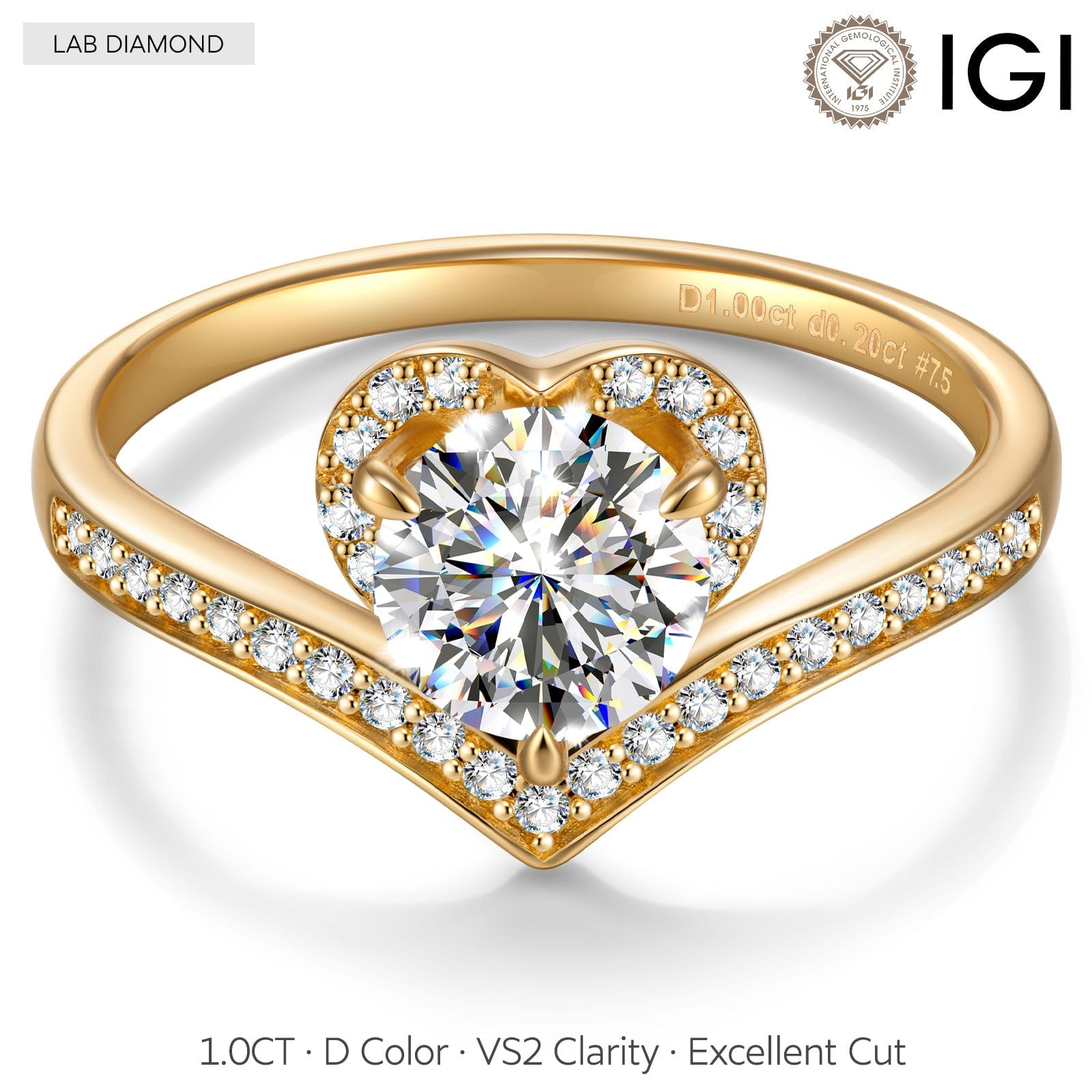 IGI Certified Lab-Grown Round Brilliant Cut Diamond - Pave Classic Engagement Ring 14K Yellow Gold Plated (Includes IGI Certification from International Gemological Institute)