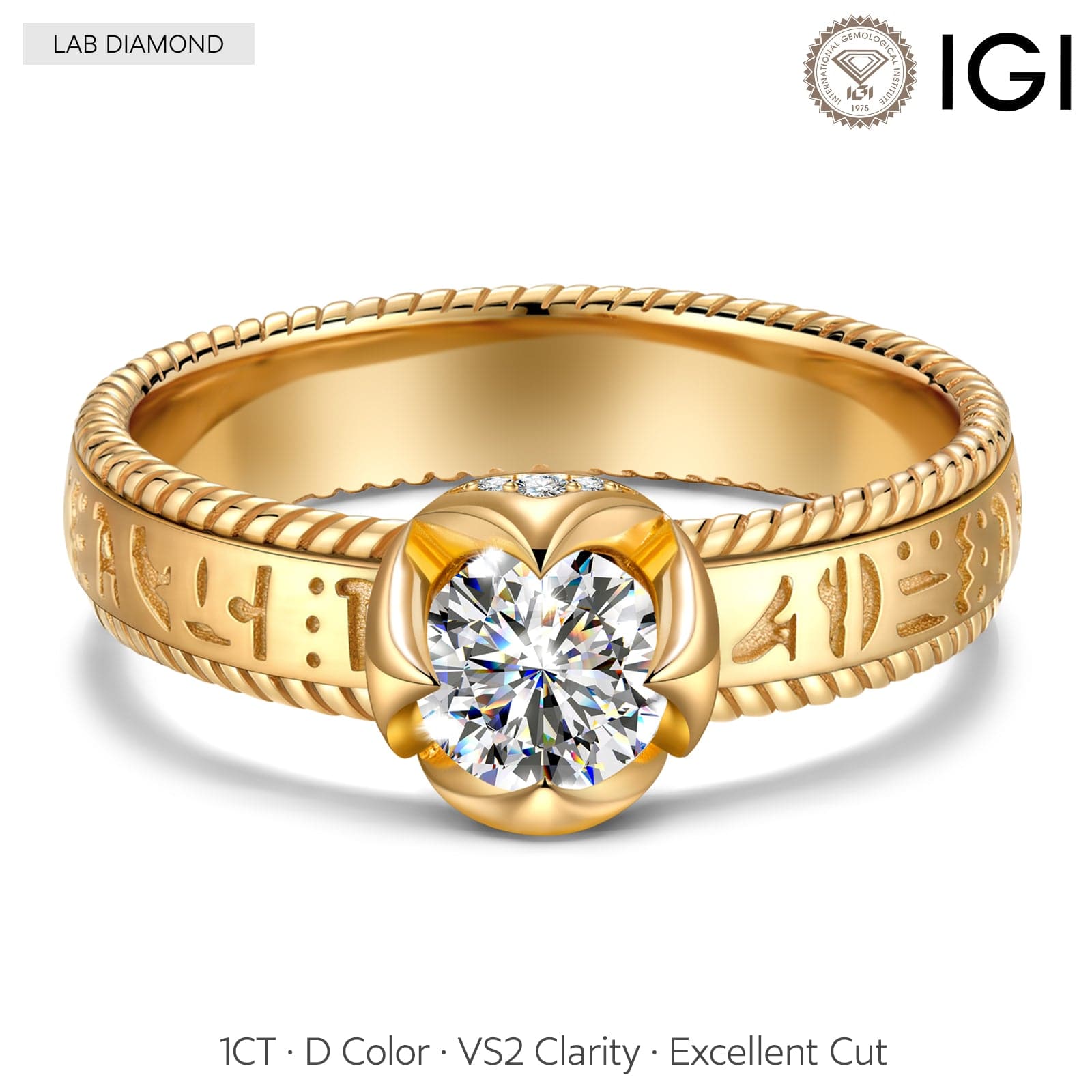 IGI Certified Lab-Grown Round Cut Diamond - Solitaire Classic Engagement Ring 14K Yellow Gold Plated (Includes IGI Certification from International Gemological Institute)