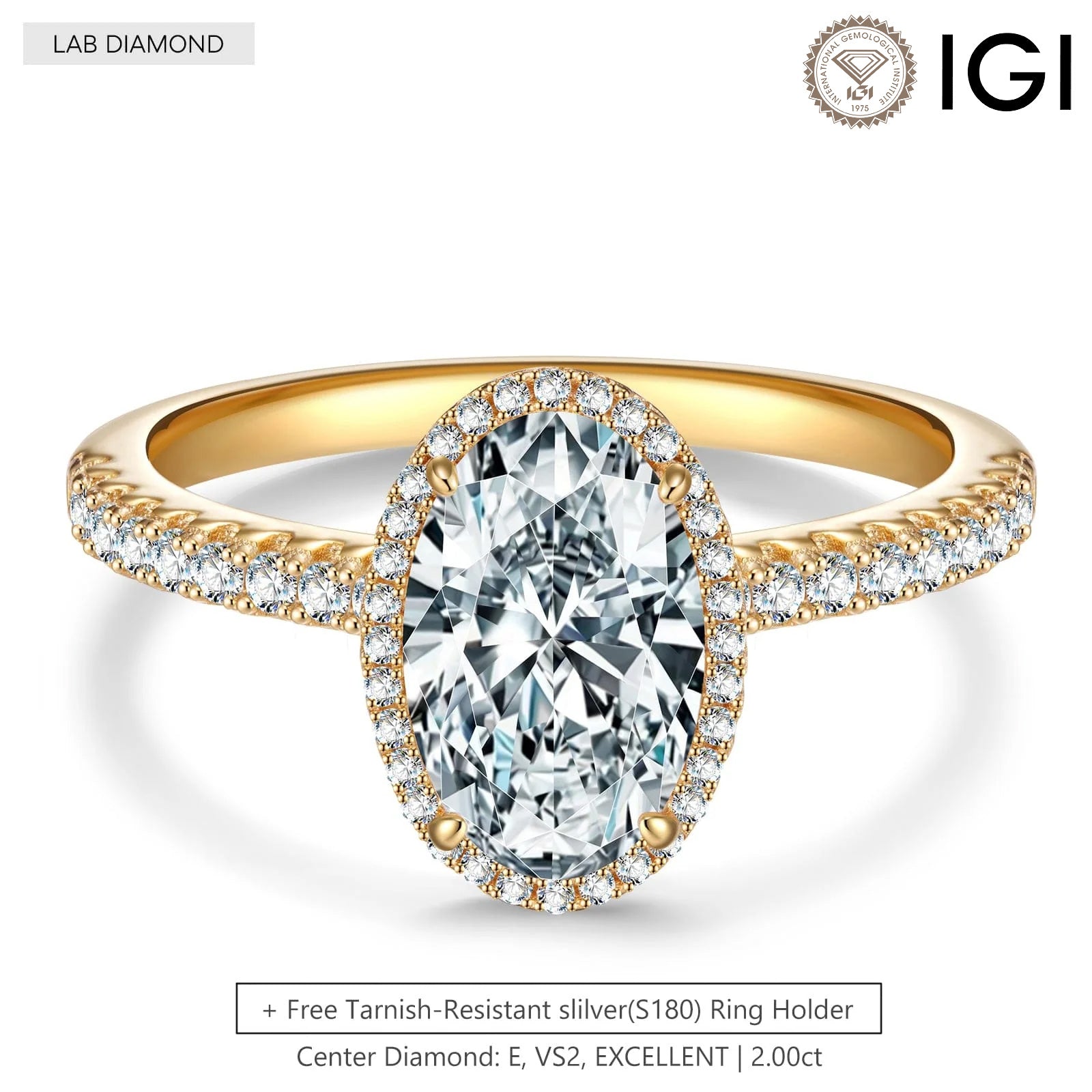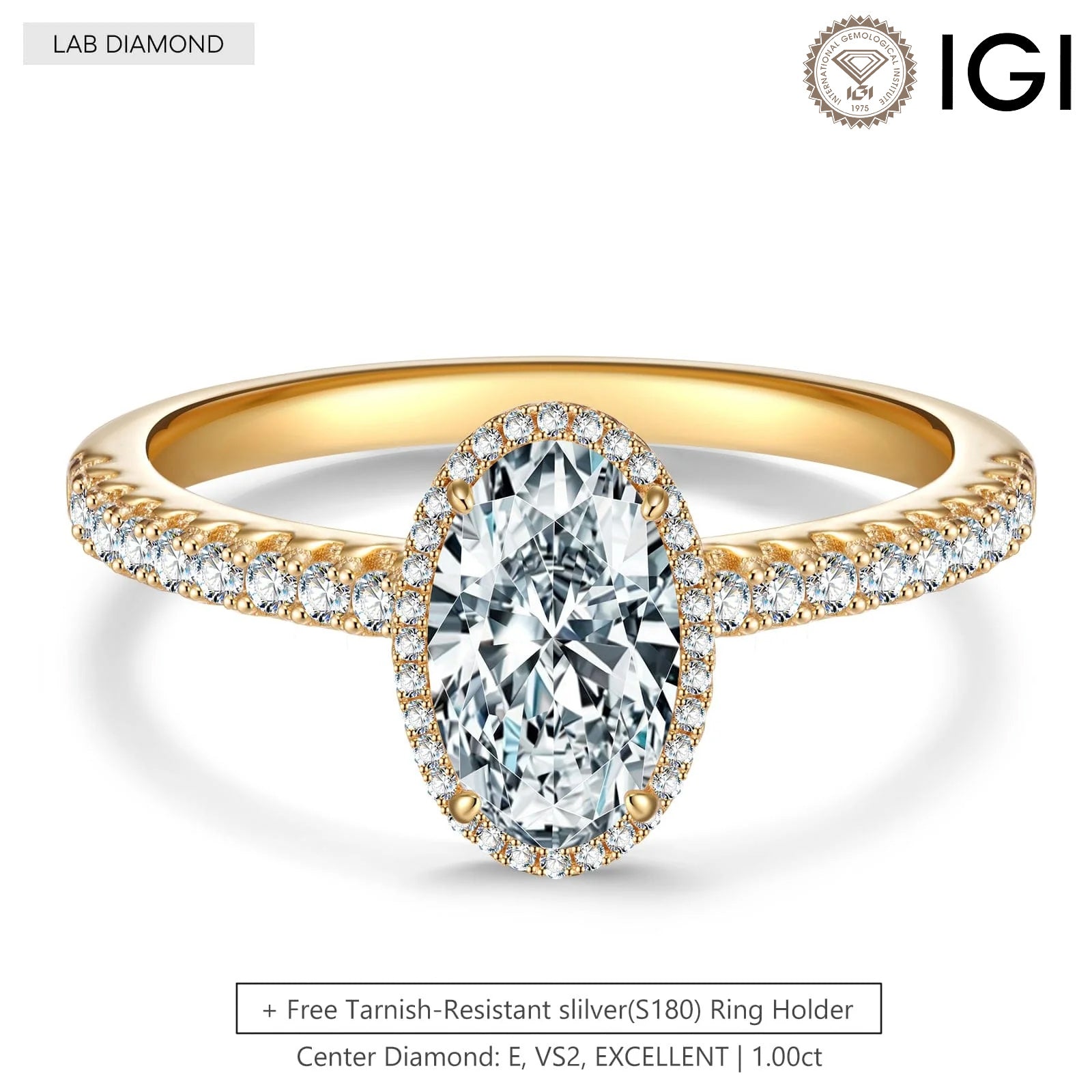 Exclusive Sale: IGI Certified Lab-Grown Oval Brilliant Cut Diamond - And Get a 14K Yellow Gold Plated Ring Holder For Free (Includes IGI Certification from International Gemological Institute)