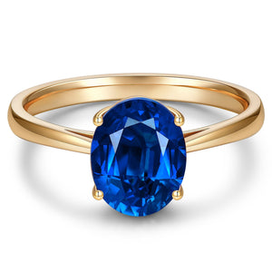 Oval Brilliant Cut Royal Blue Hue Lab-Certified Blue Sapphire - Solitaire Classic Engagement Ring 14K Yellow Gold Plated (Includes GRC Certification from Gemstone Research Center)