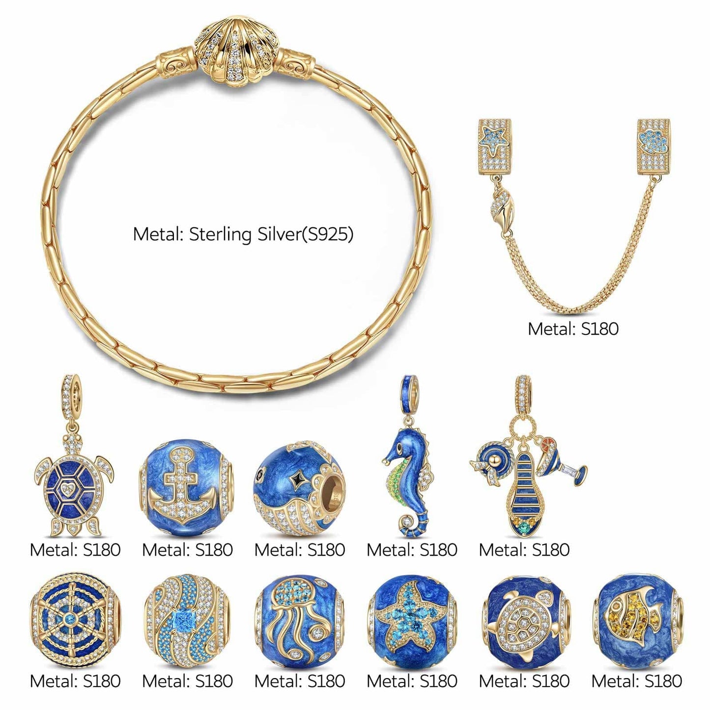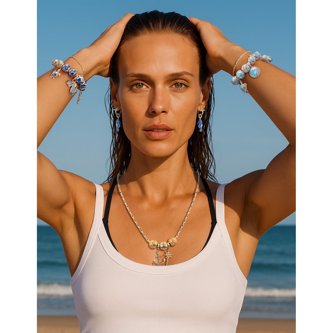 Design: Draws inspiration from the diverse marine life found in the depths of the sea and ocean culture. Each charm, whether it be a dolphin, a seashell, a mermaid, or a sailing vessel, carries the spirit of the sea and its inhabitants, inviting you to embrace the beauty and diversity of our marine ecosystem.