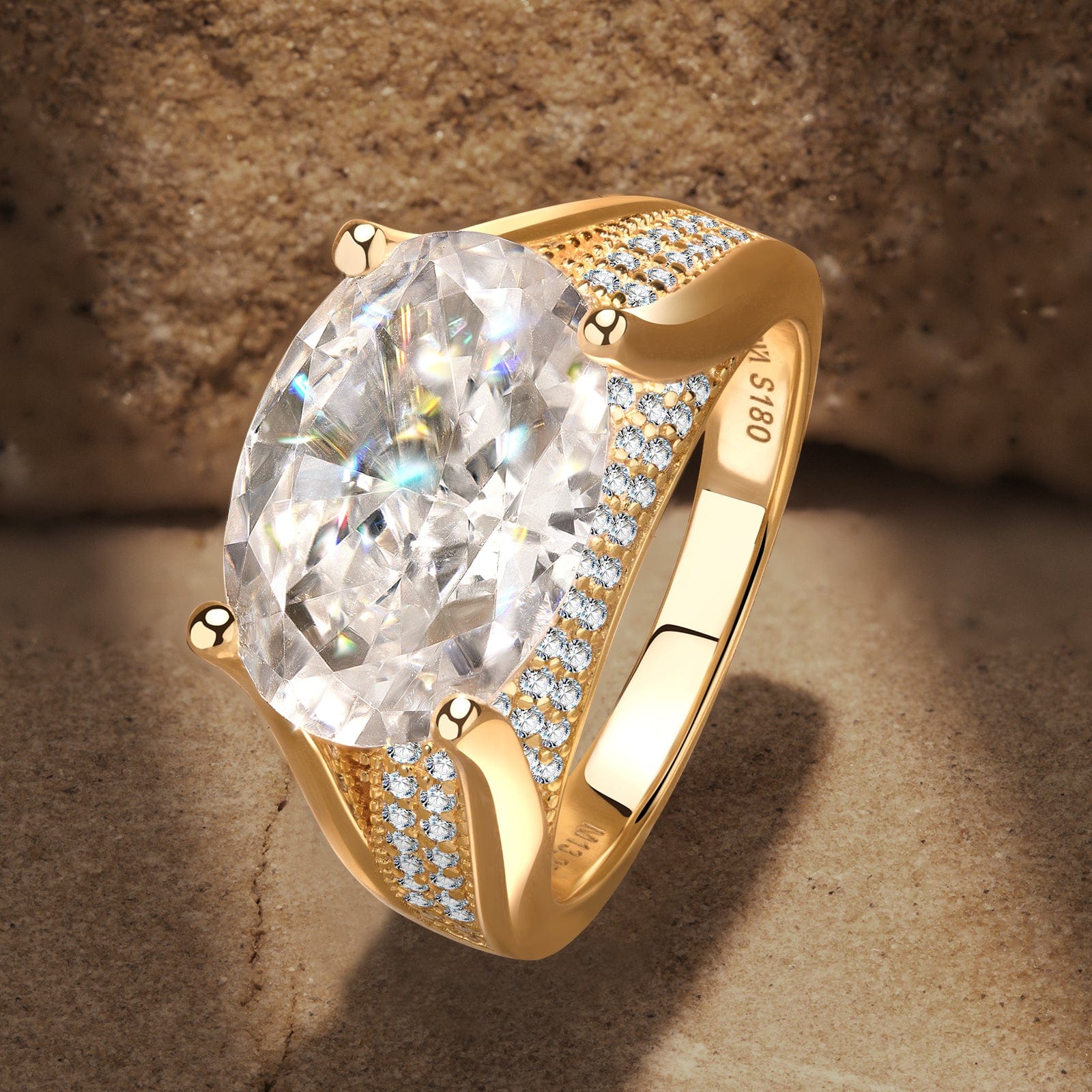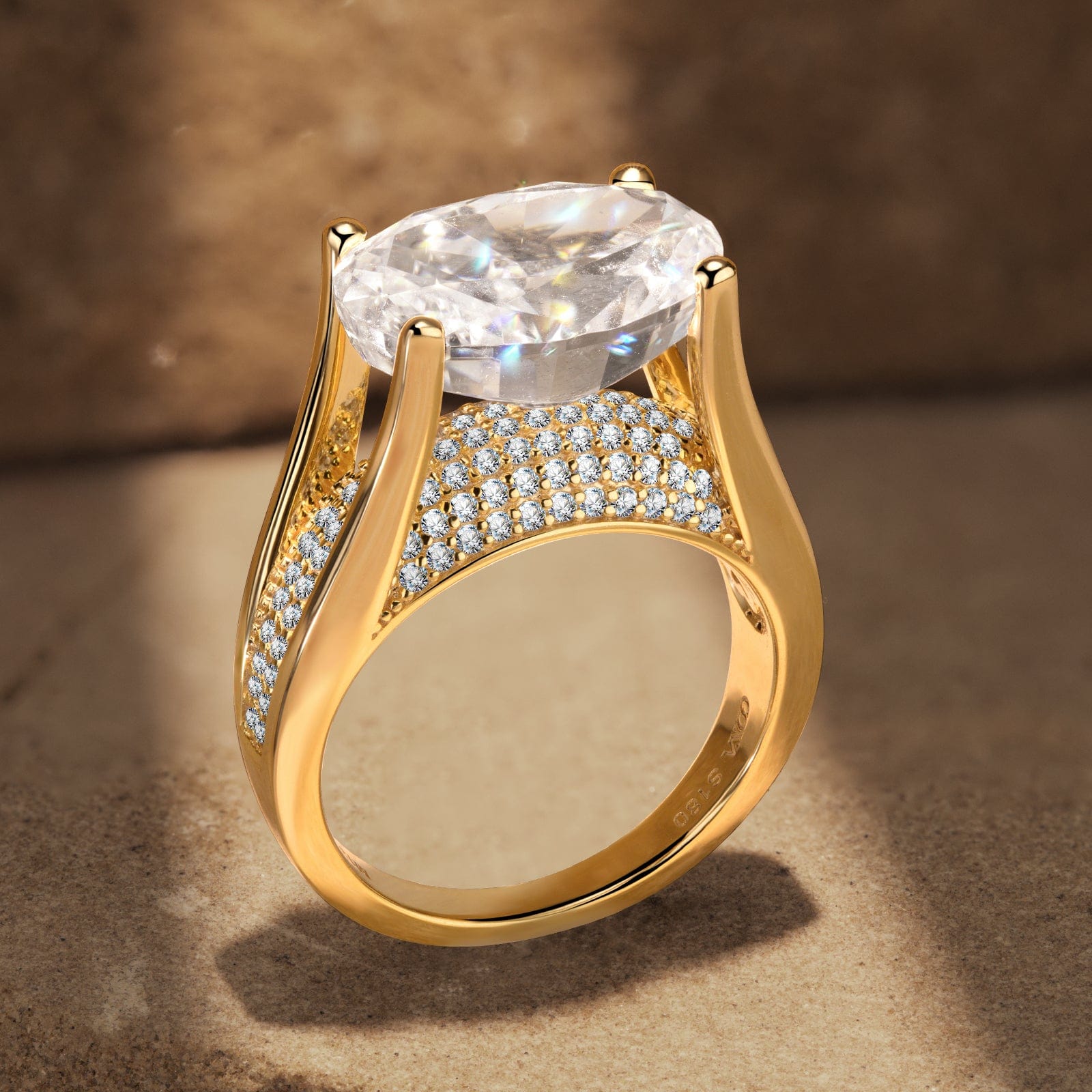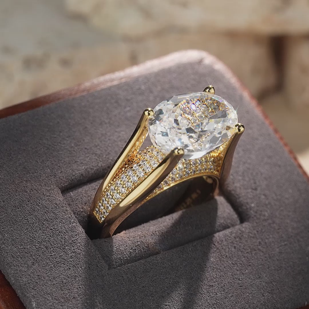 14*10mm Oval Modified Brilliant Cut Ice-Frosted Sparkle Lab Zircon - Pave Classic Engagement Ring 14K Yellow Gold Plated